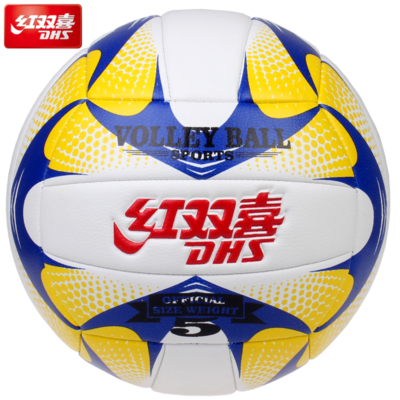 FV525-1-红双喜牛皮纹机缝排球(蓝)