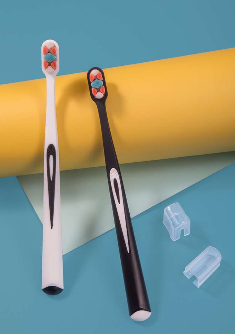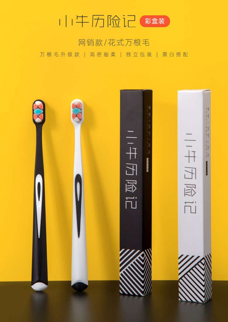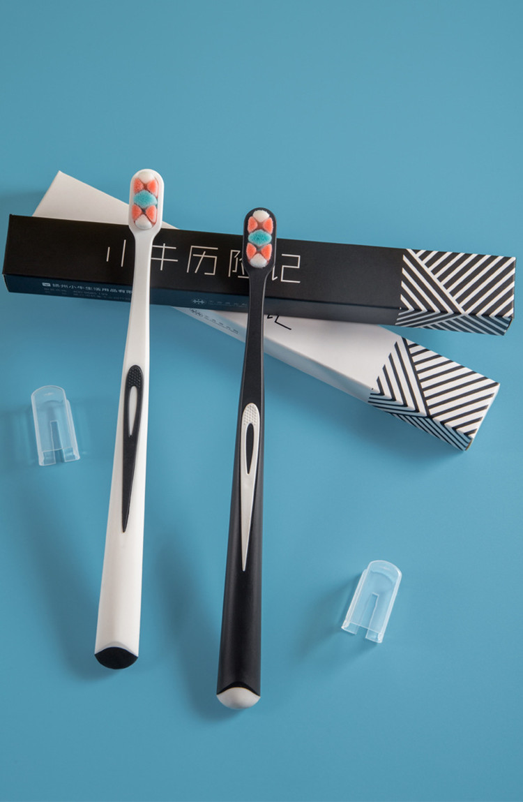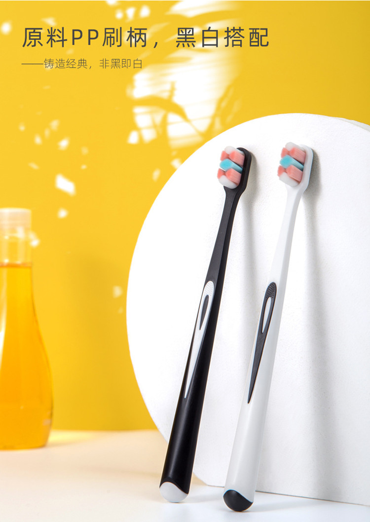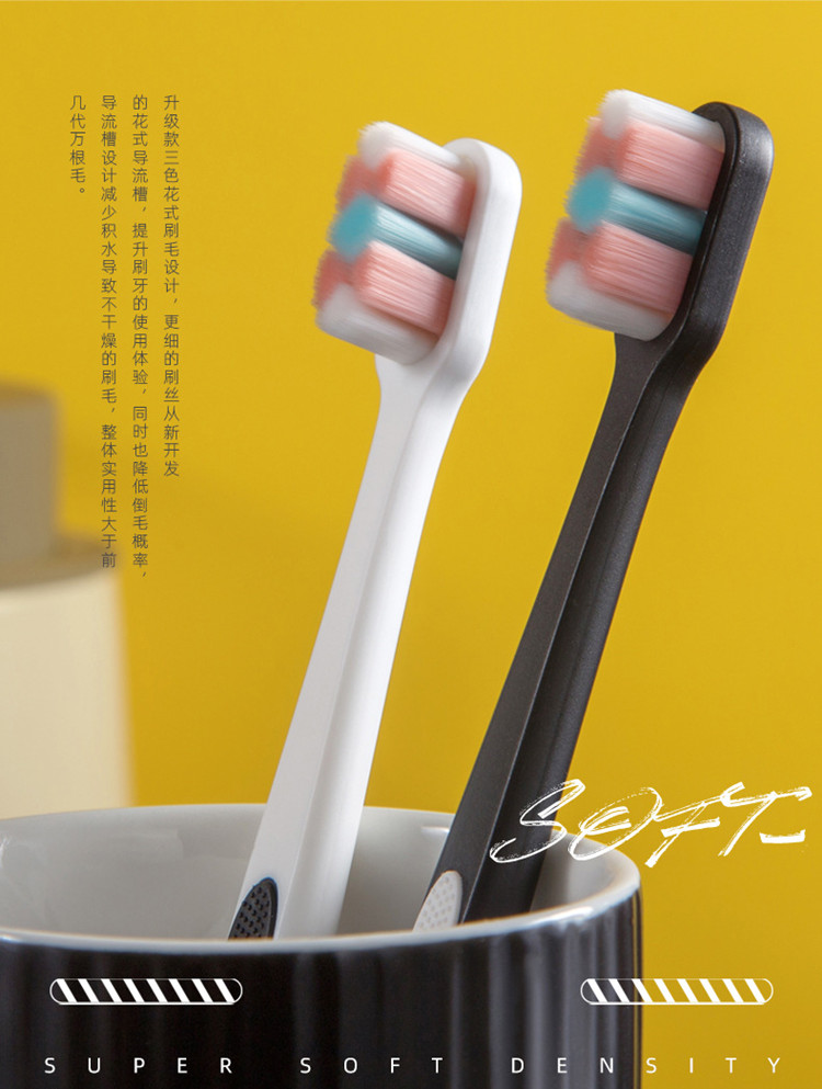 【自营】彩色花式万根毛成人软毛牙刷情侣男女士黑白2支