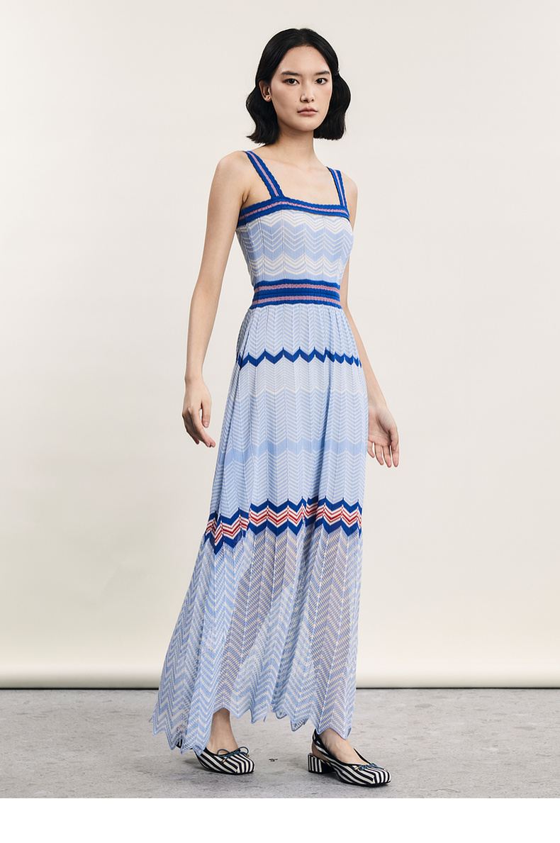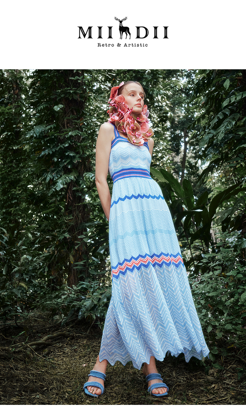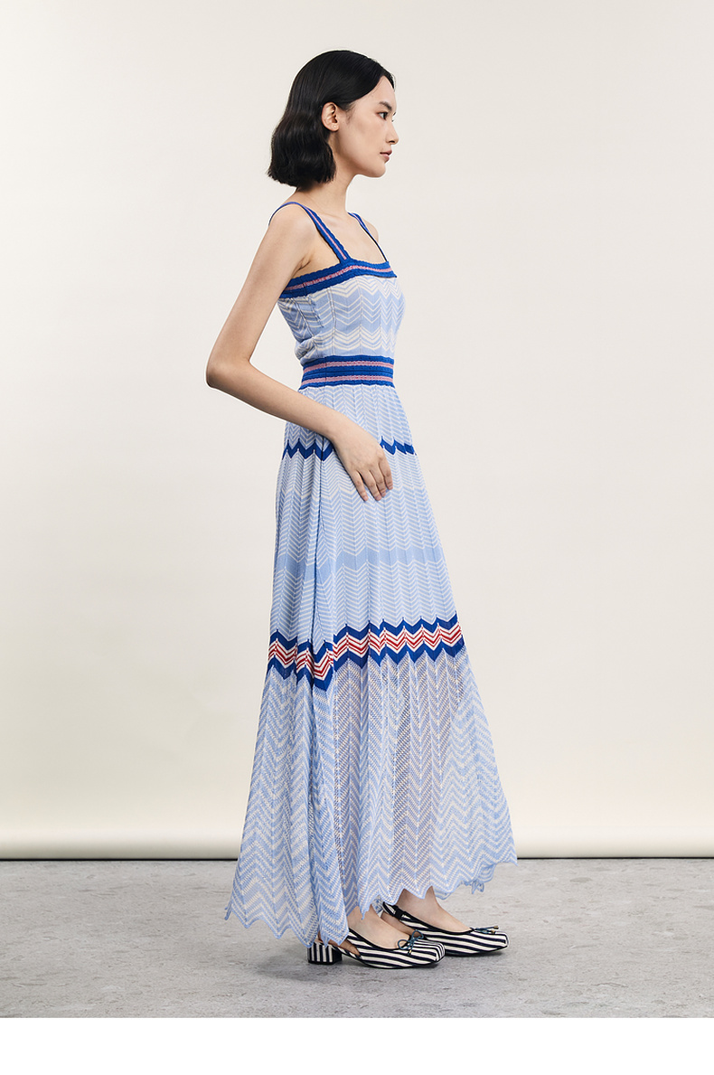 谜底吊带连衣裙2024年夏季新品文艺度假风条纹针织长裙242MZ0887