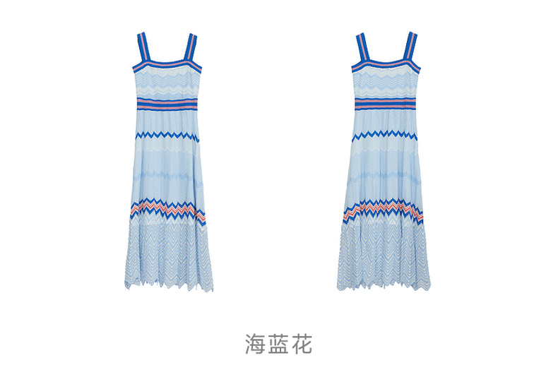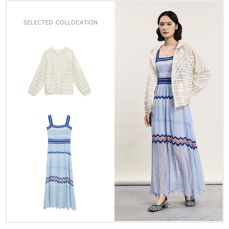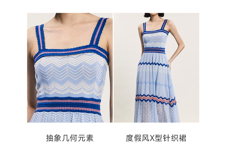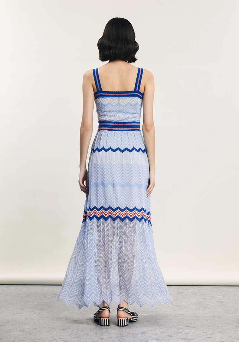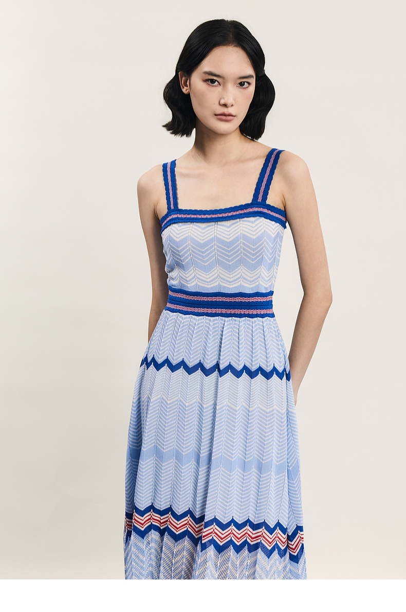谜底吊带连衣裙2024年夏季新品文艺度假风条纹针织长裙242MZ0887