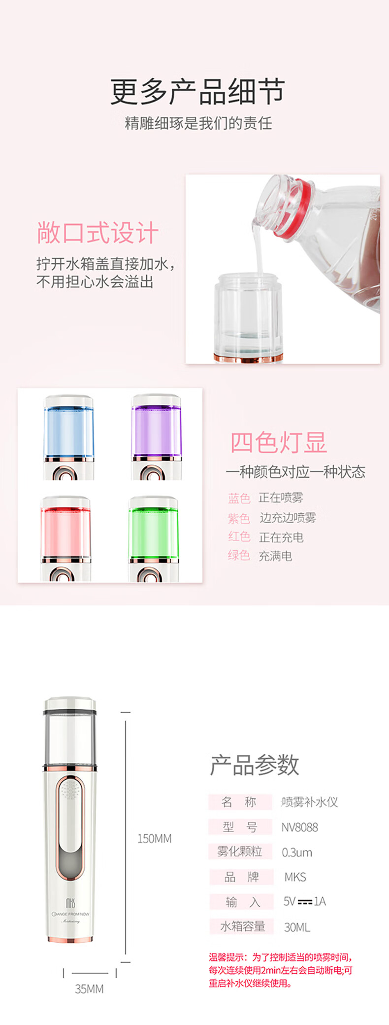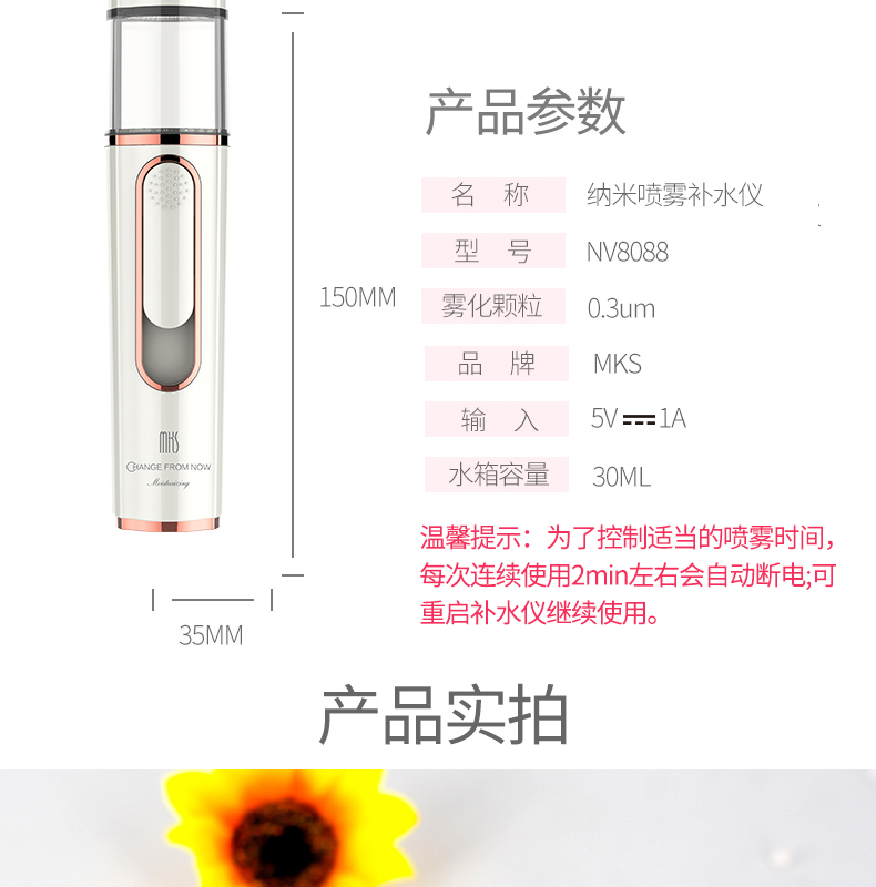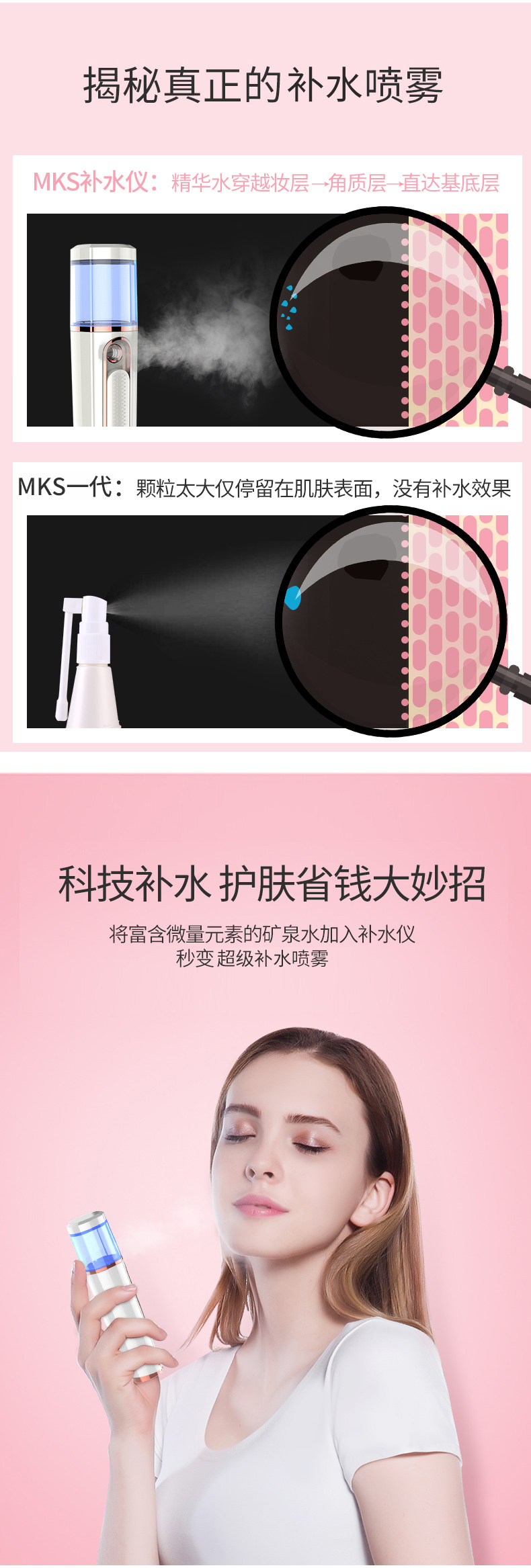 【小家电】mks美克斯纳米喷雾补水仪冷喷雾器家用 30ml大水箱 自带充电宝功能送老婆闺蜜生日礼物NV8088 HF