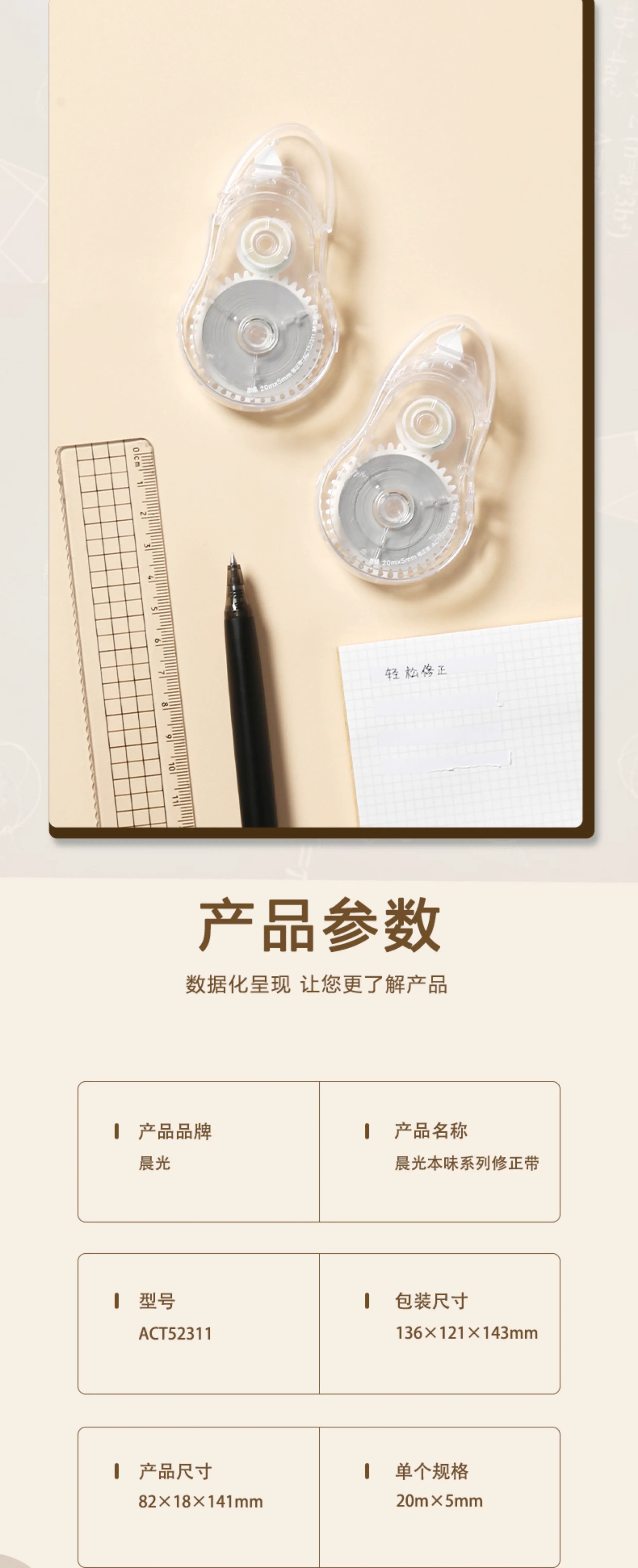 晨光修正带本味系列透明简约ACT52311白20m 1个装/3个装