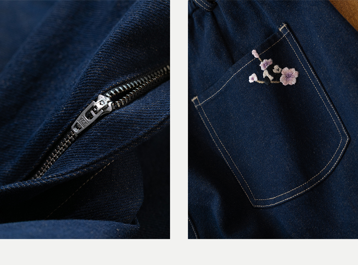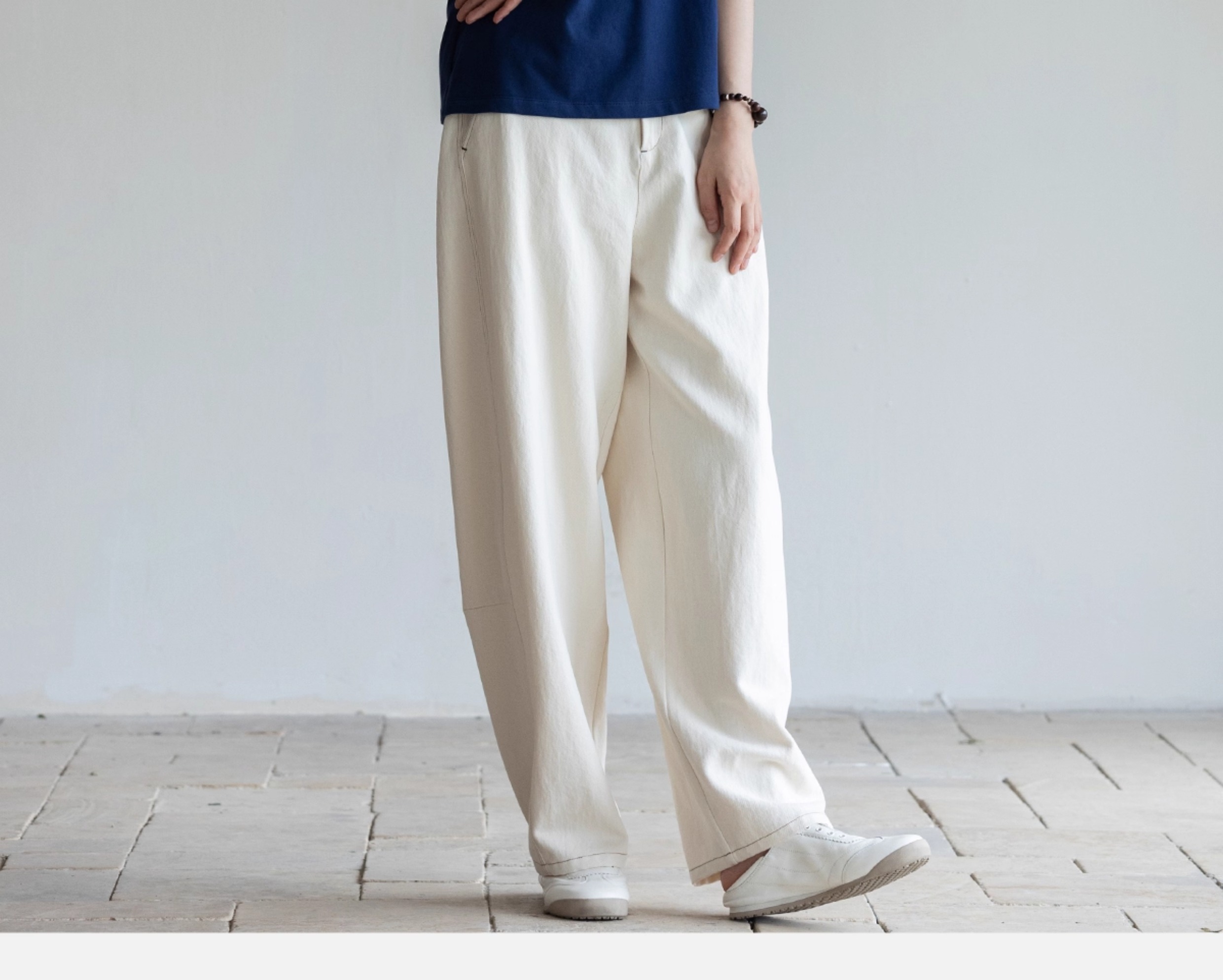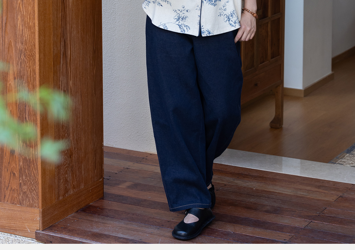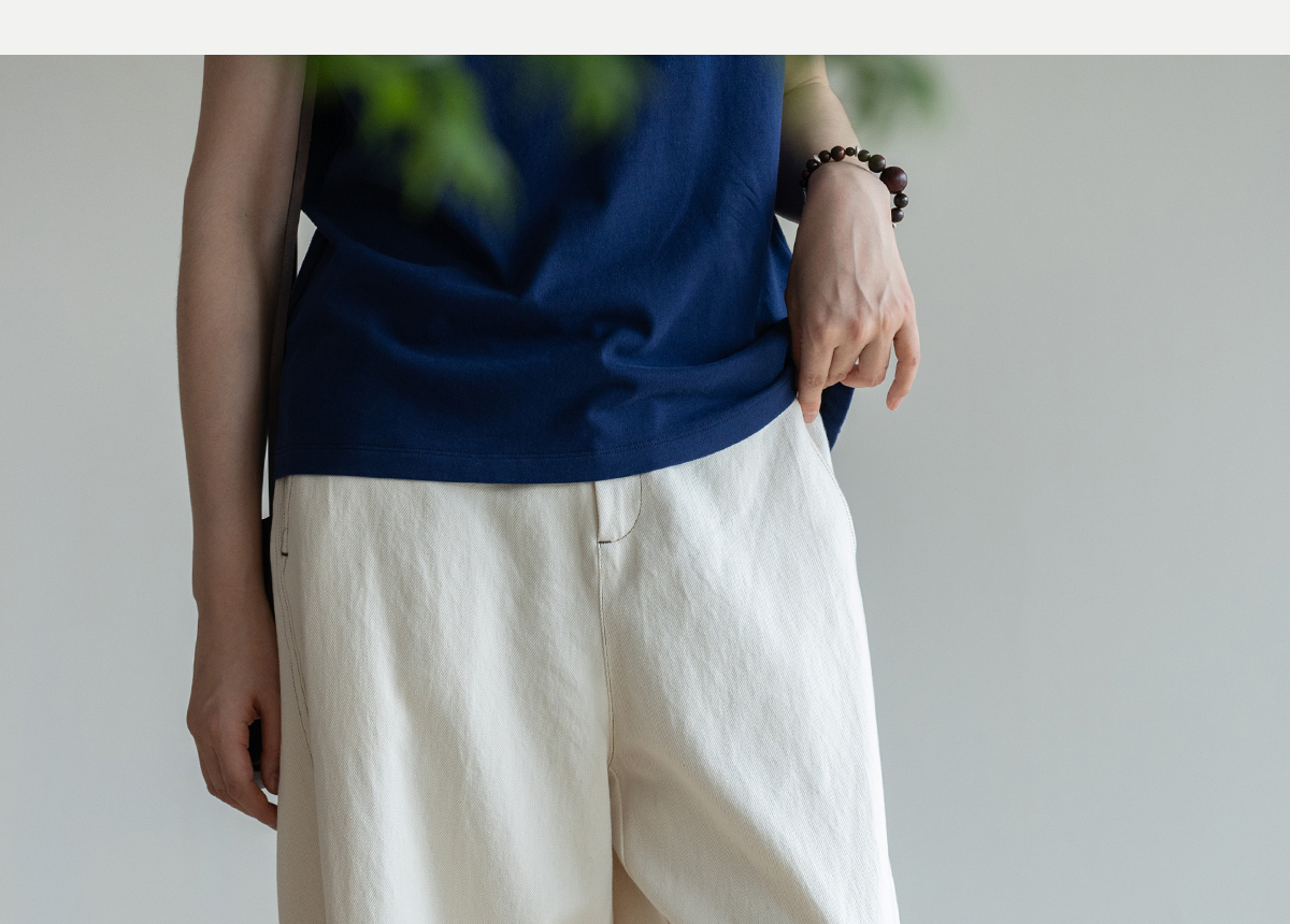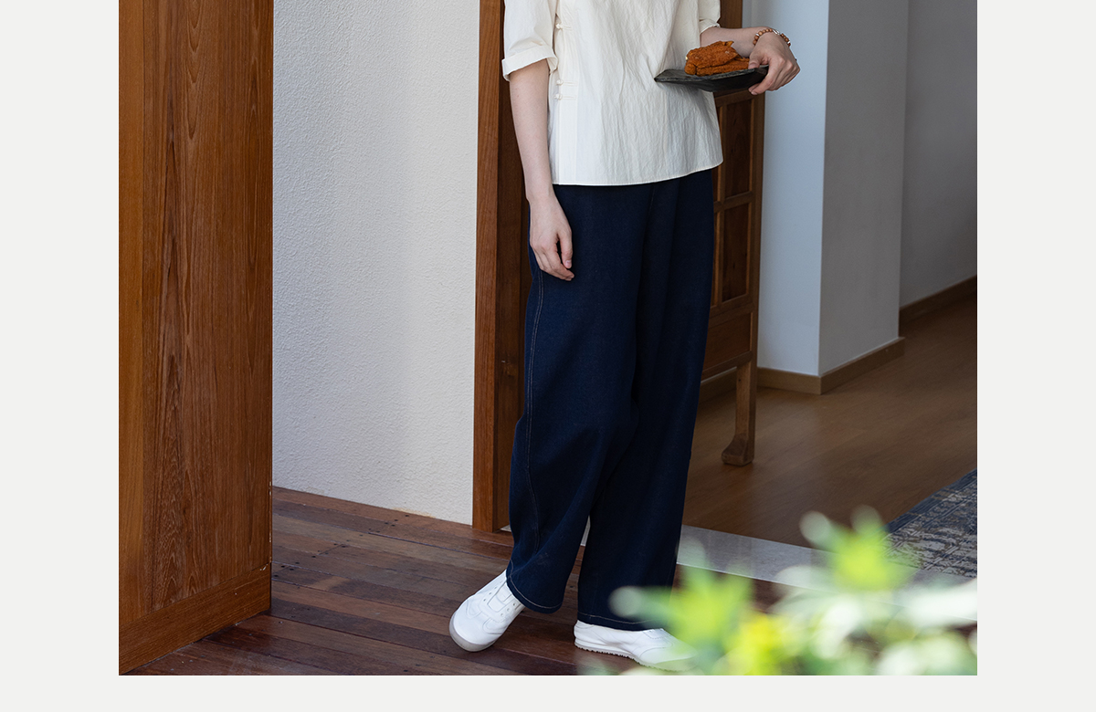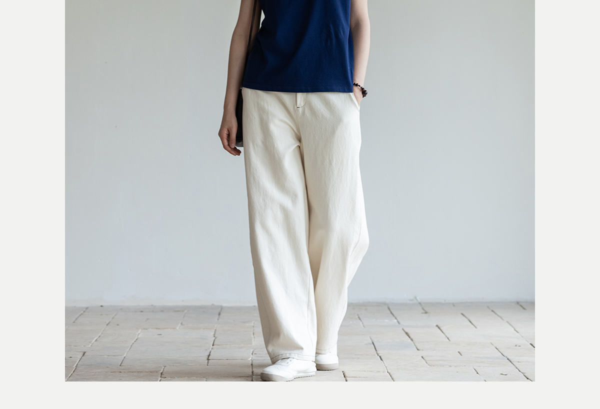 牧衣游原创 棉麻净色手工刺绣休闲裤通勤百搭简约宽松阔腿裤 南亭