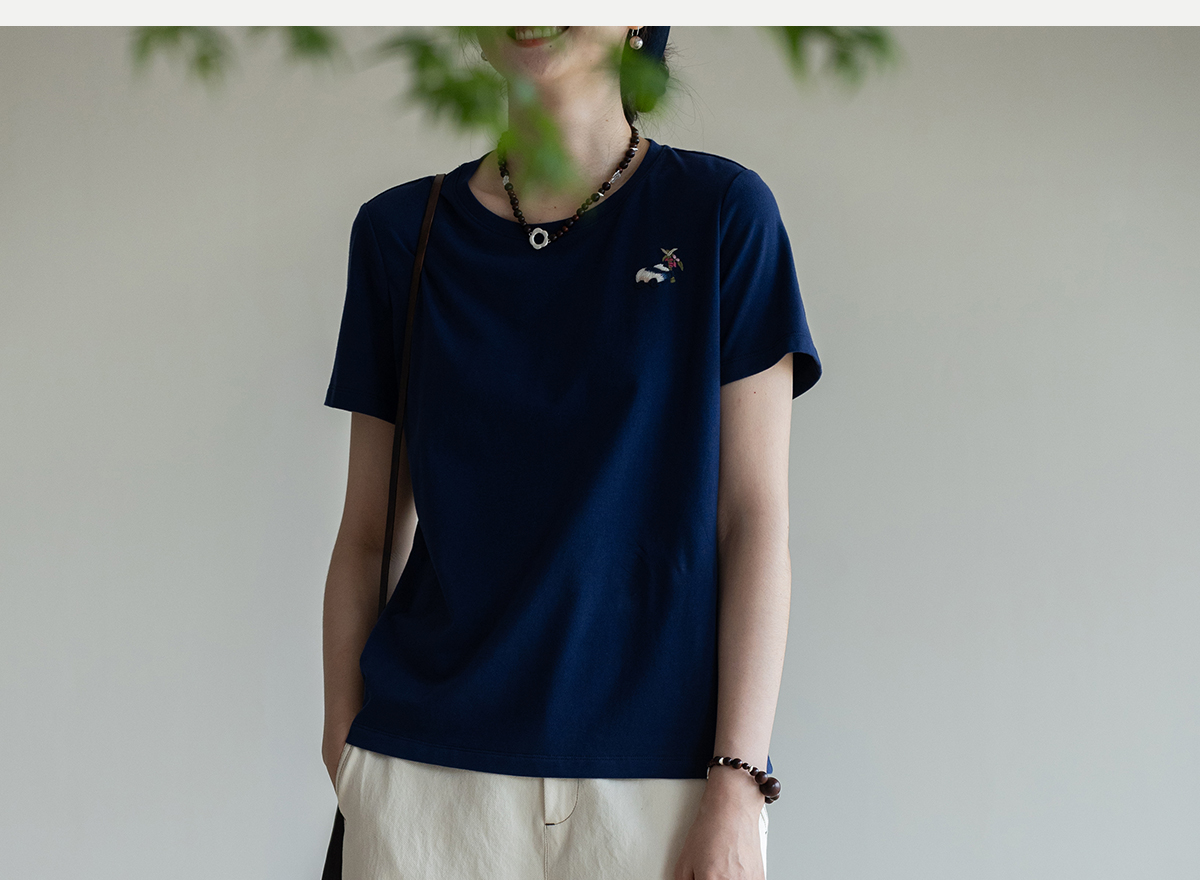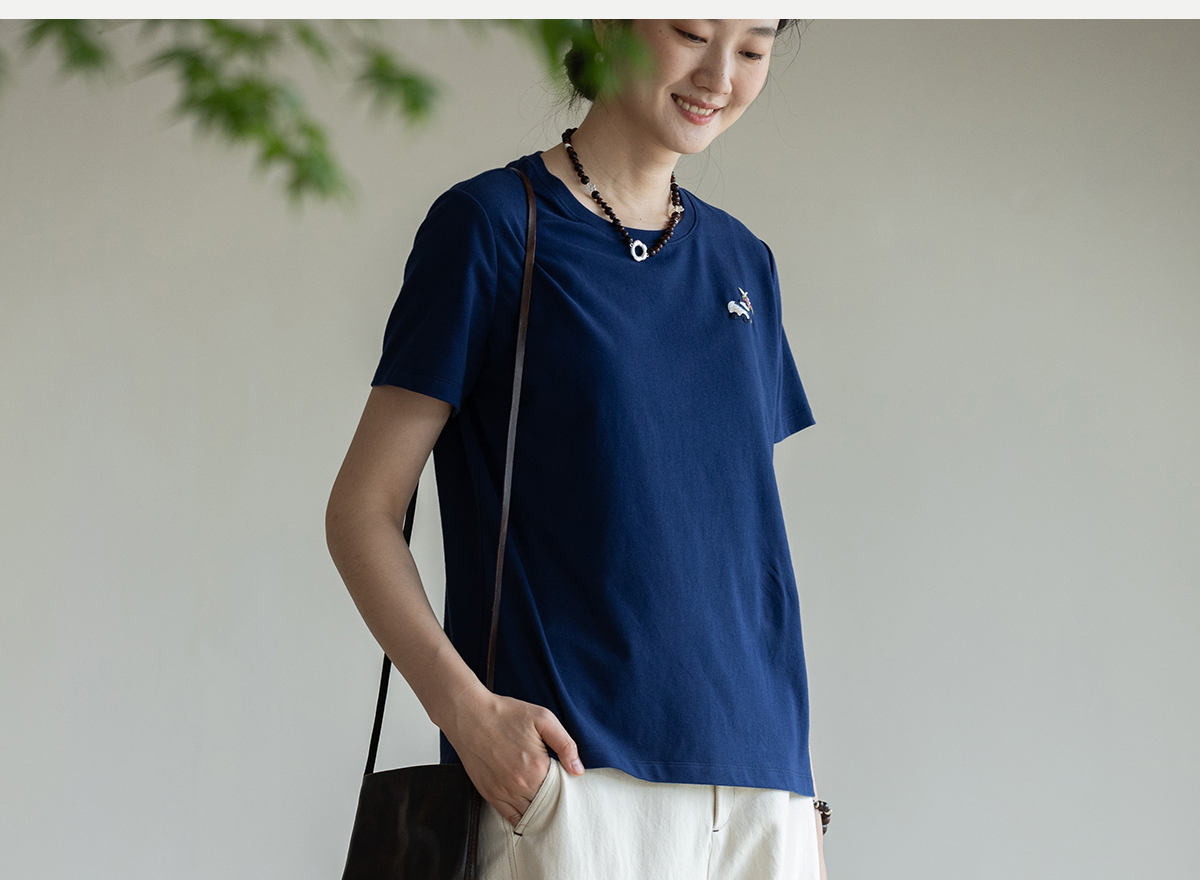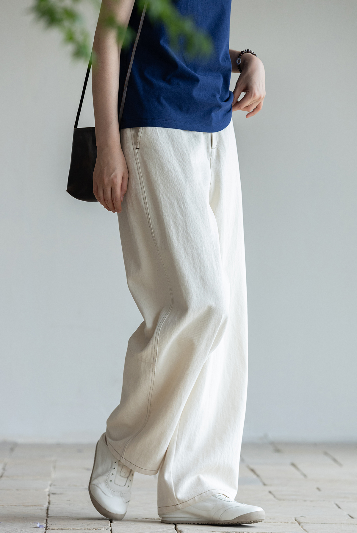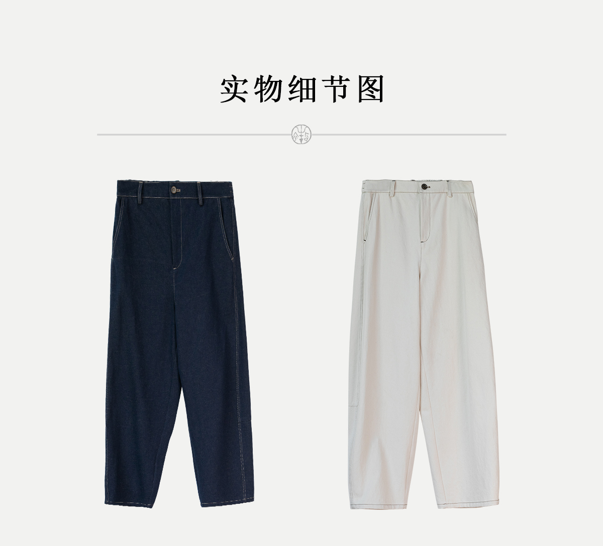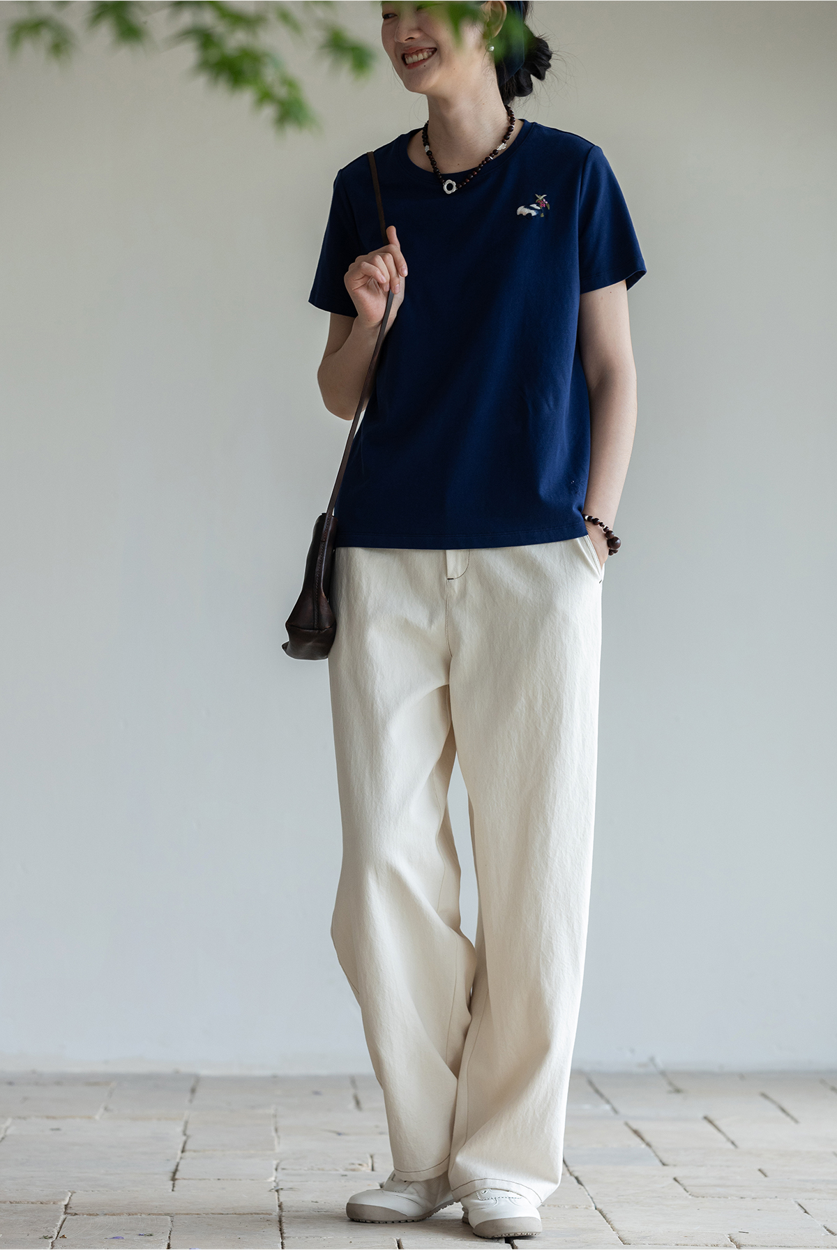 牧衣游原创 棉麻净色手工刺绣休闲裤通勤百搭简约宽松阔腿裤 南亭