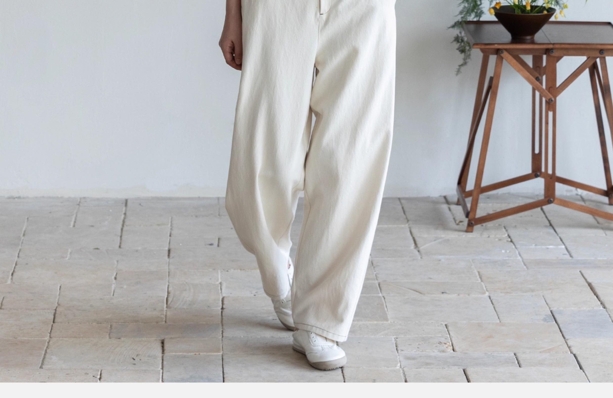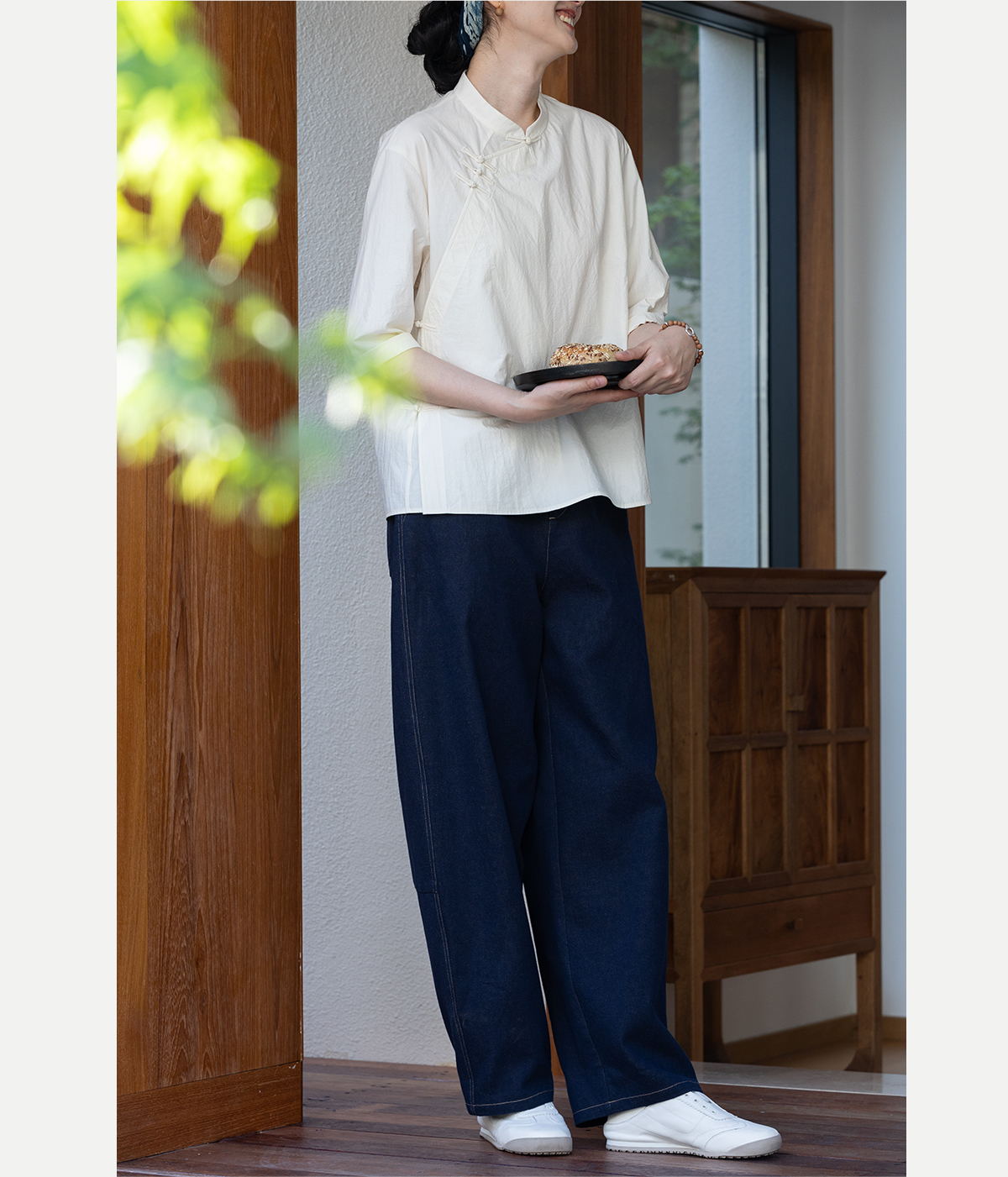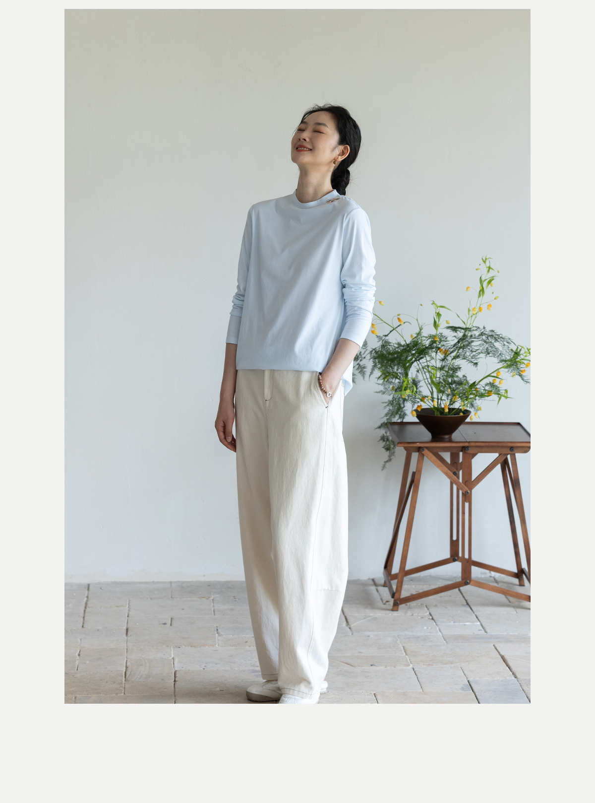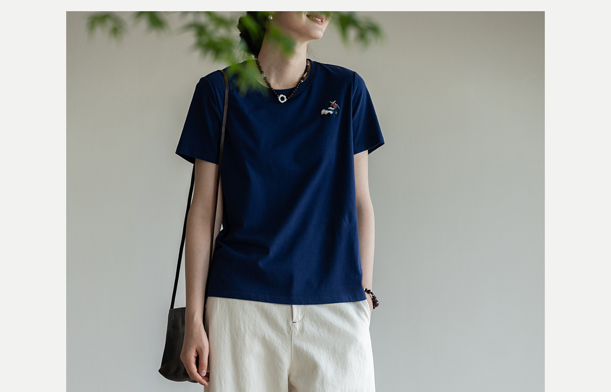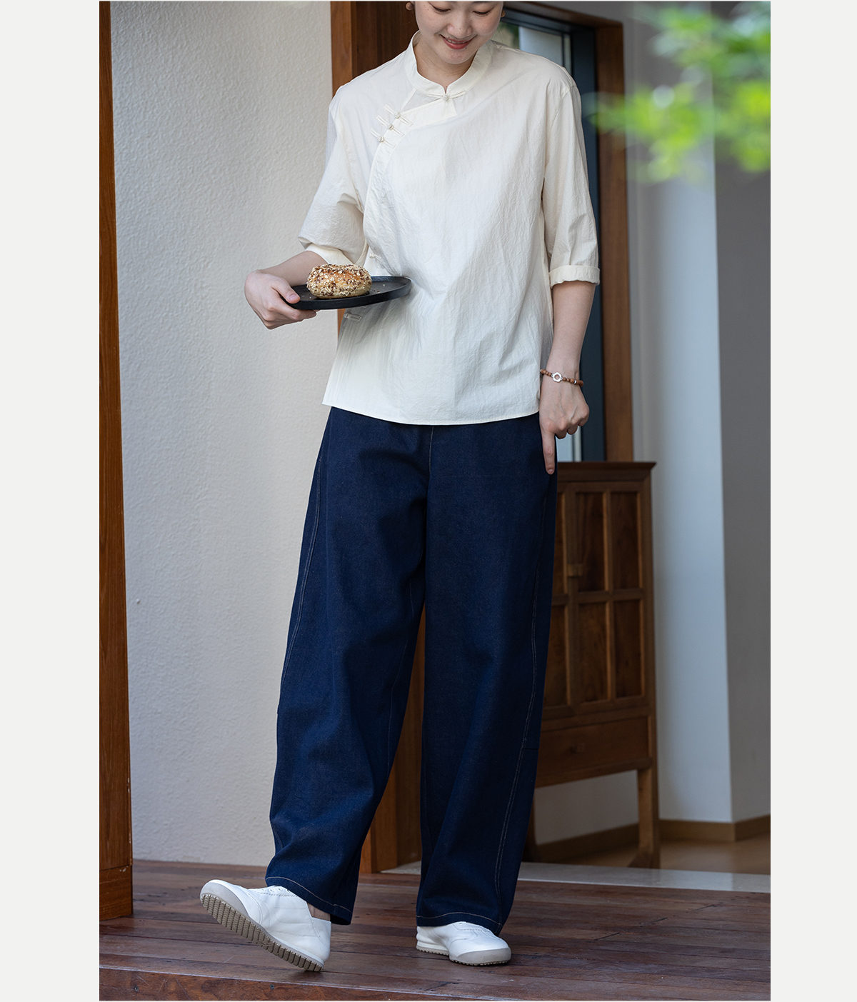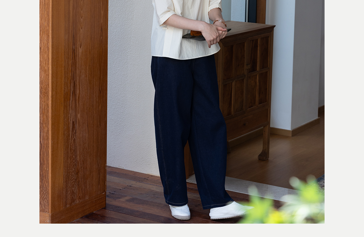 牧衣游原创 棉麻净色手工刺绣休闲裤通勤百搭简约宽松阔腿裤 南亭