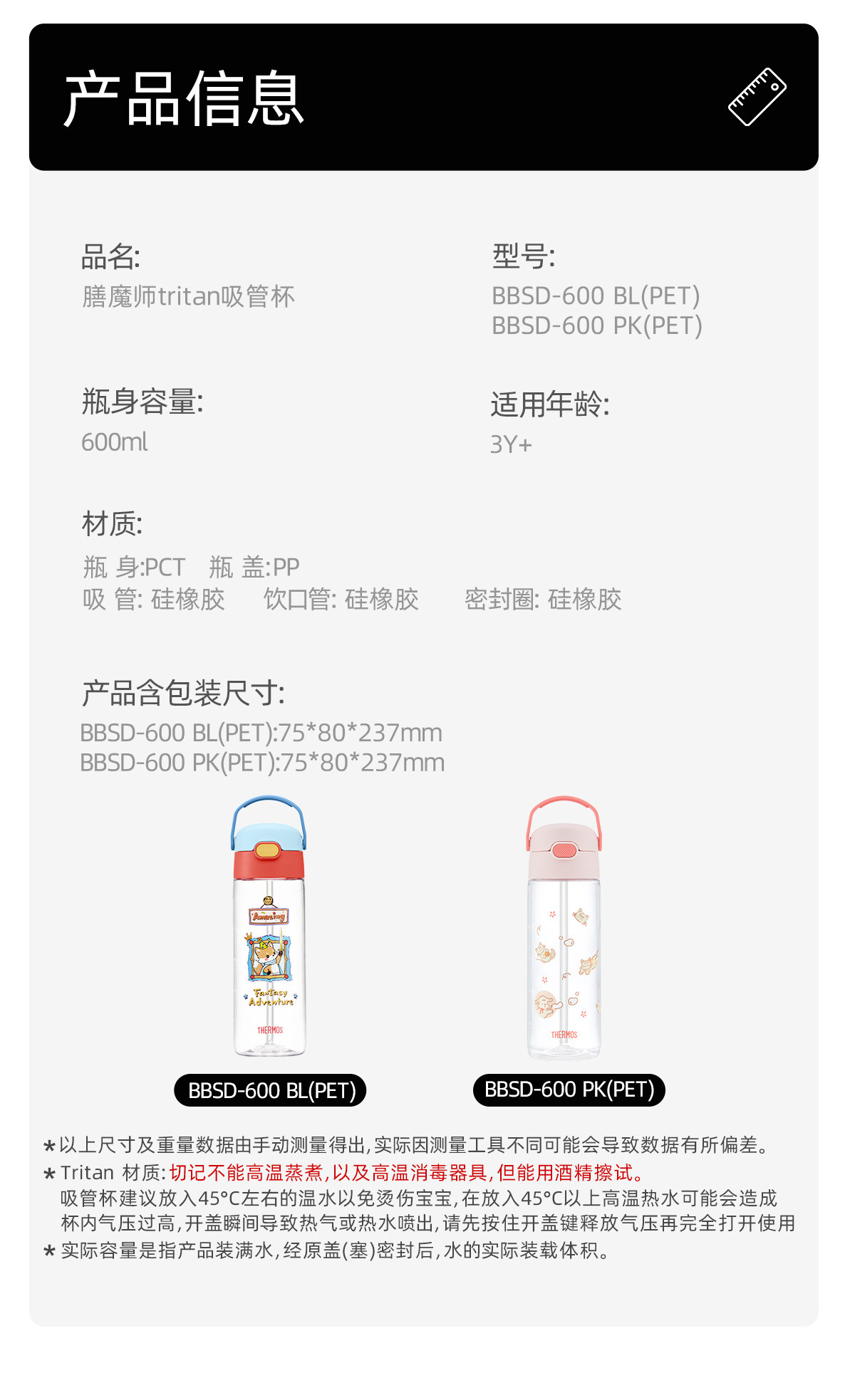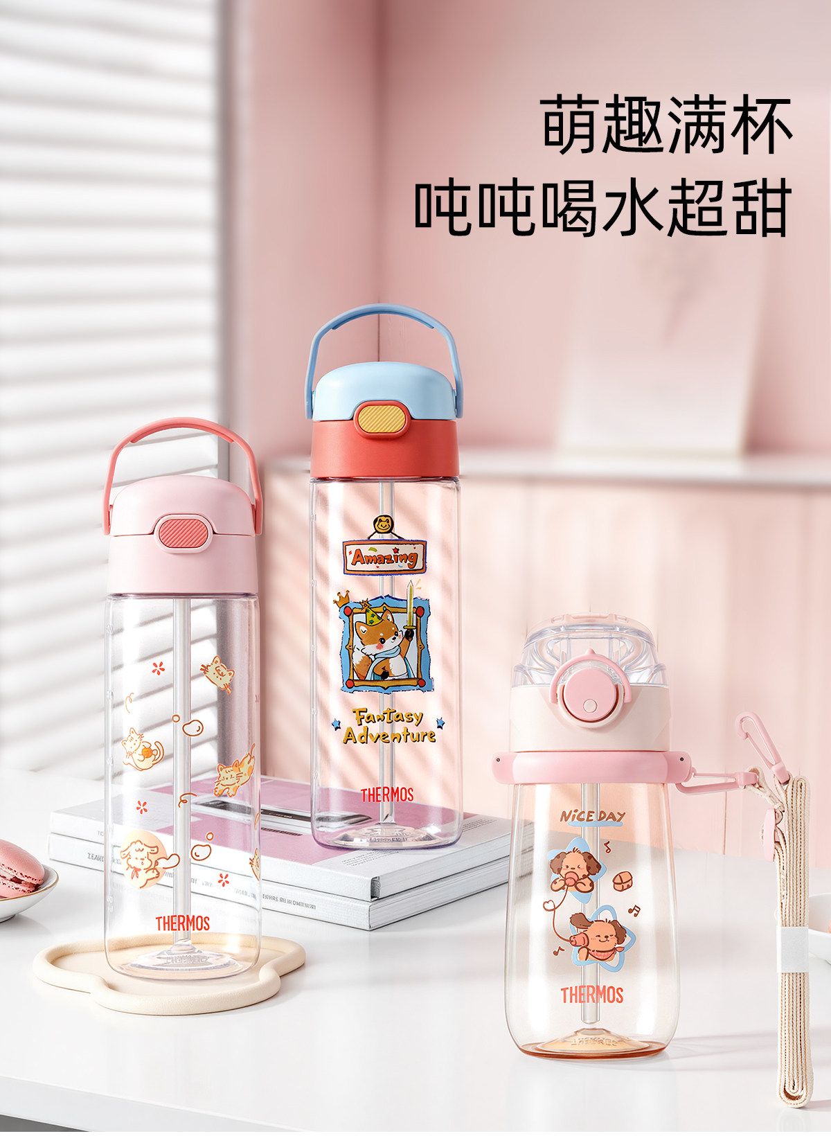膳魔师宠物系列大容量便携吸管杯水杯600mL(蓝色)