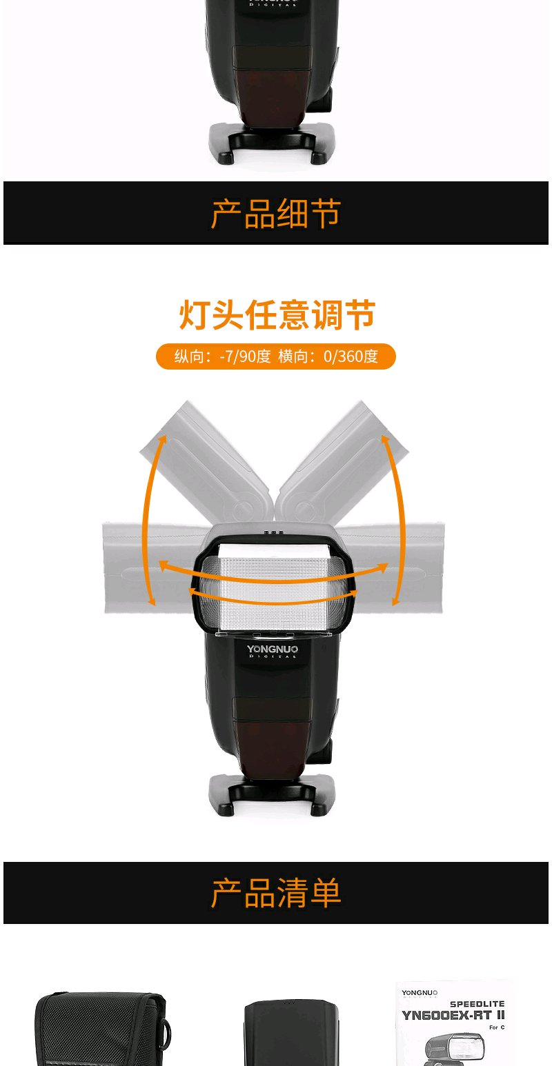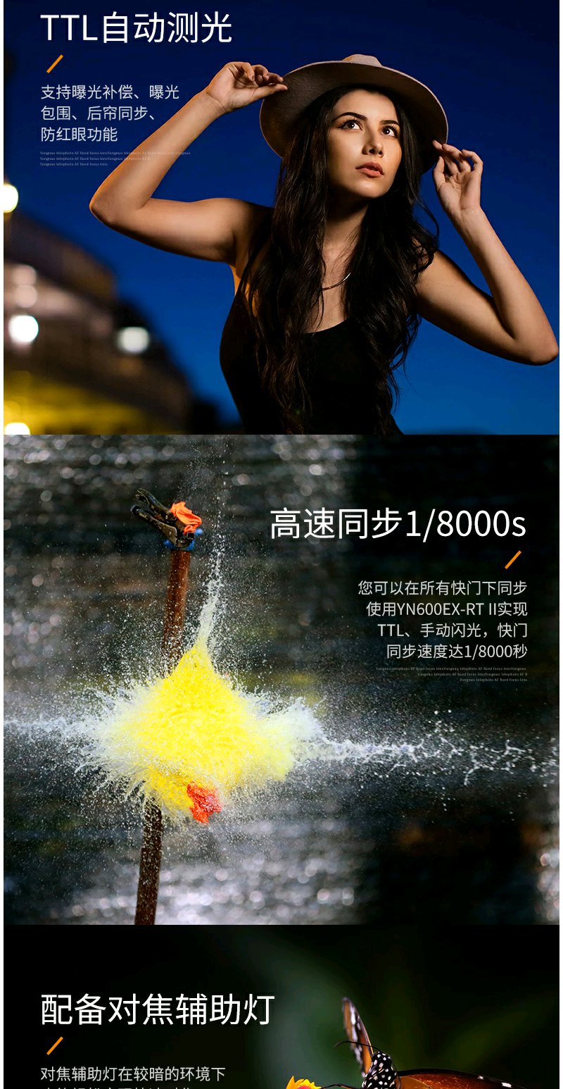 永诺 YN600EX-RT II 机顶闪光灯高速同步TTL外拍灯摄影灯兼容佳能5D4等相机 佳能口