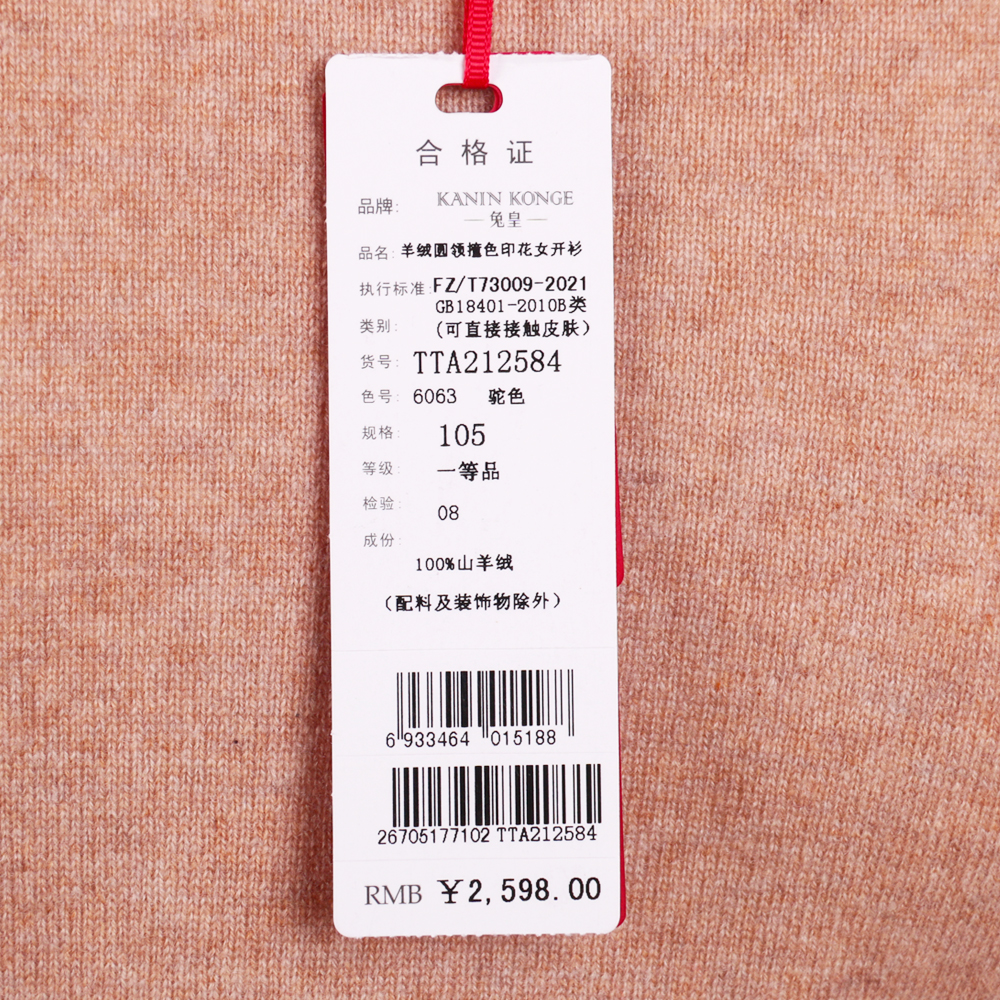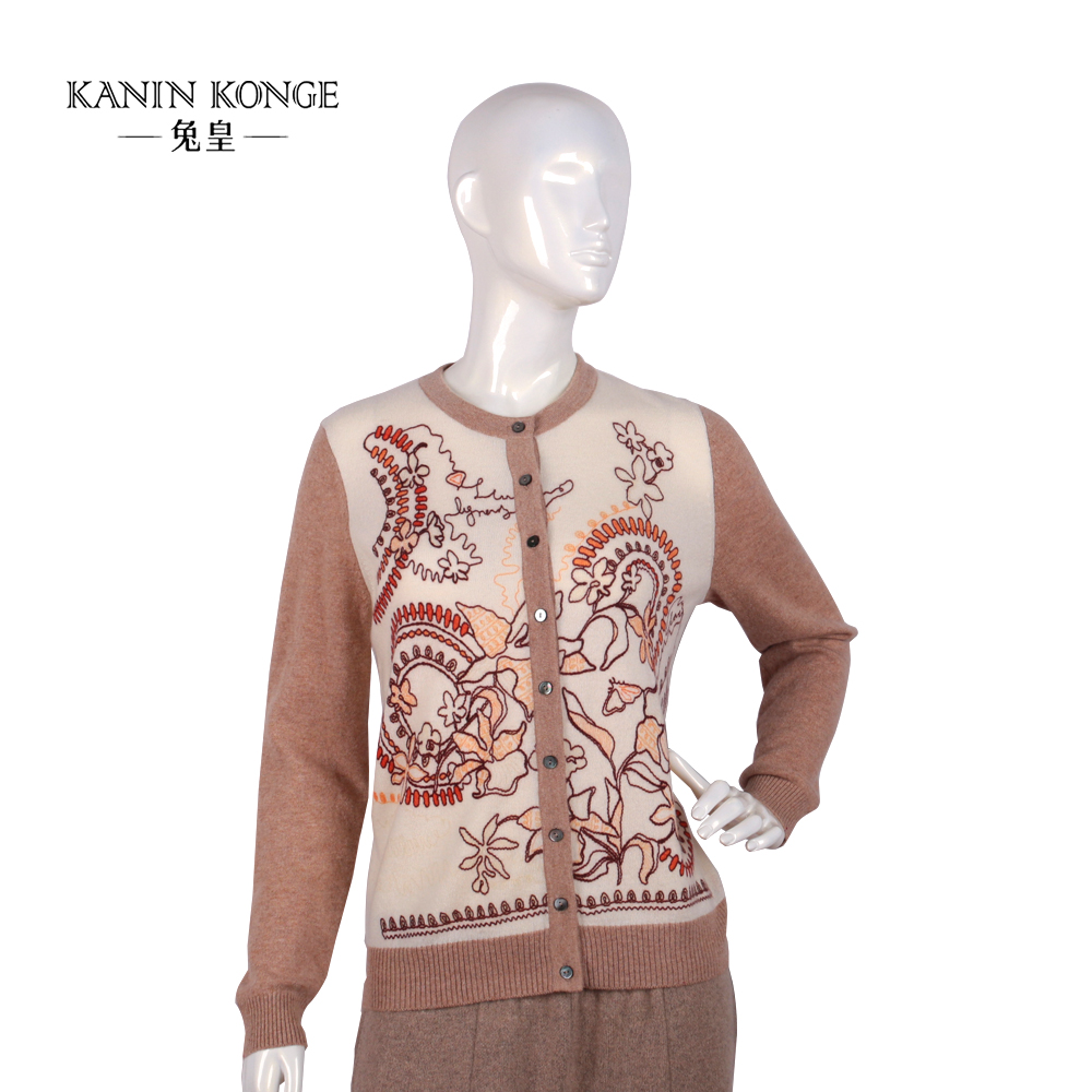 兔皇羊绒圆领撞色印花女开衫TTA212584