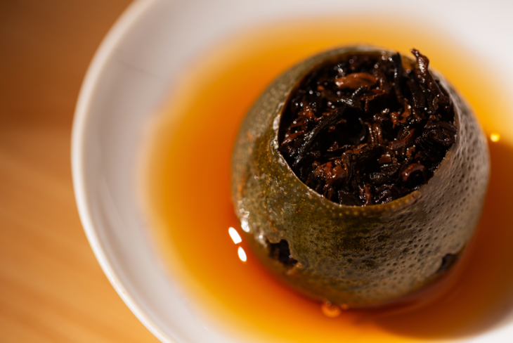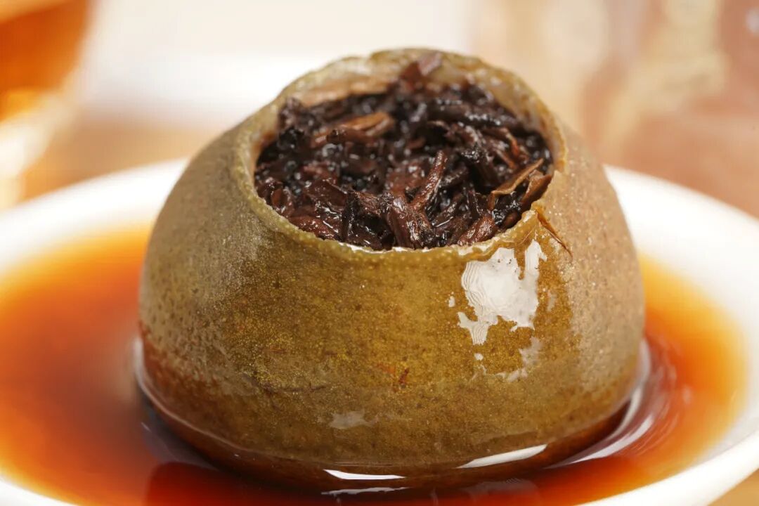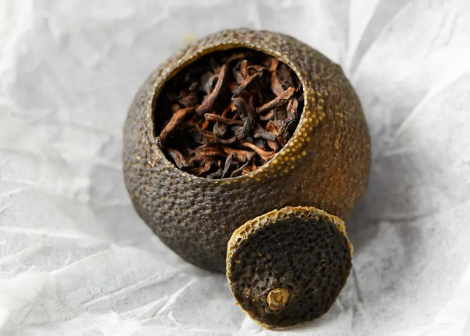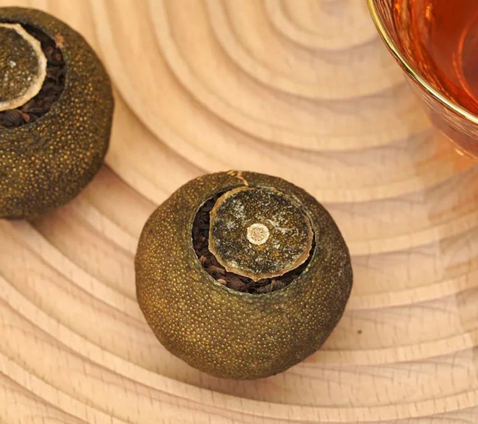 小青柑,以前叫柑普茶,是来自广东新会的柑果和云南熟茶普洱的神奇结合,清朝时还是皇室贡品。