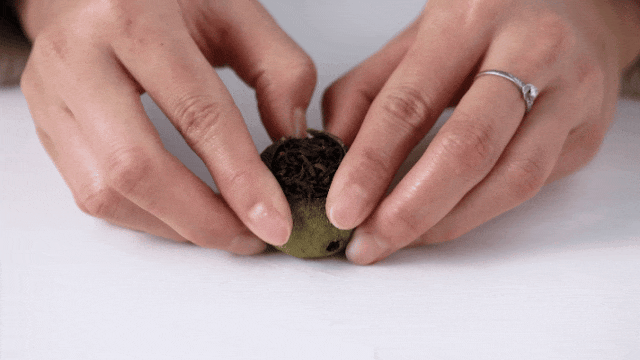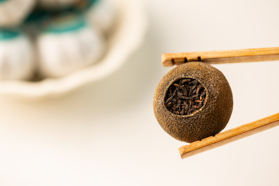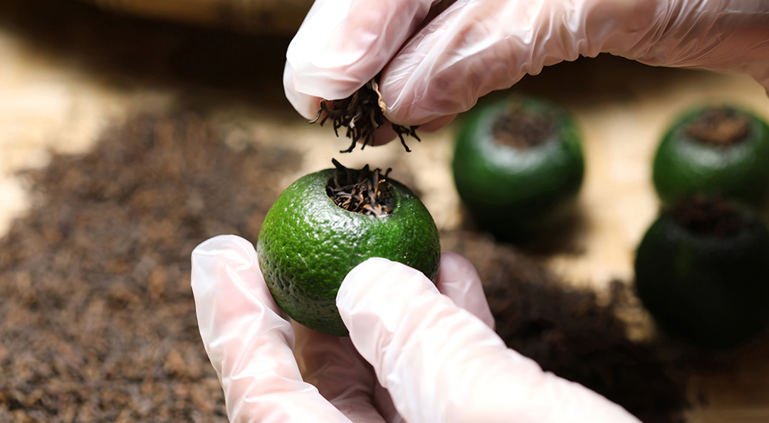 一颗玲珑小巧小青柑,甜润鲜爽,柑和茶严格臻选之外,制作工艺决定最终出品品质。