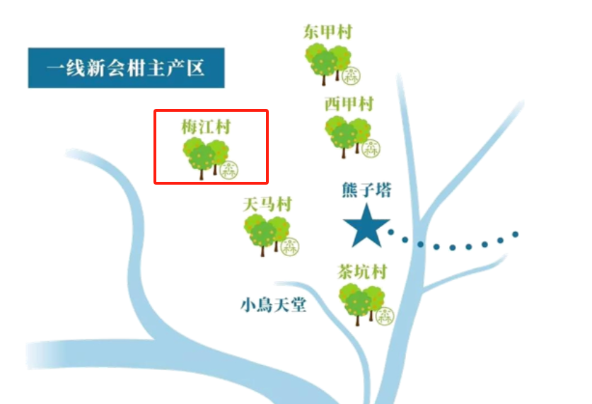 梅江村,是新会茶枝柑的著名一线核心产区,素有“柑之乡”的称誉,梅江出产的柑果光泽亮、口感清爽、顺滑,即便是鲜果价格都不低。