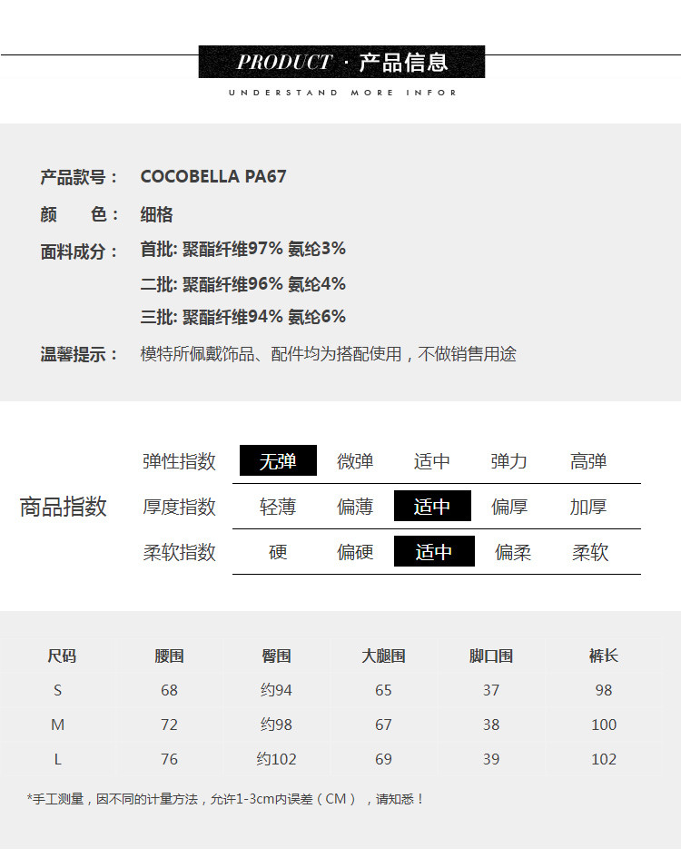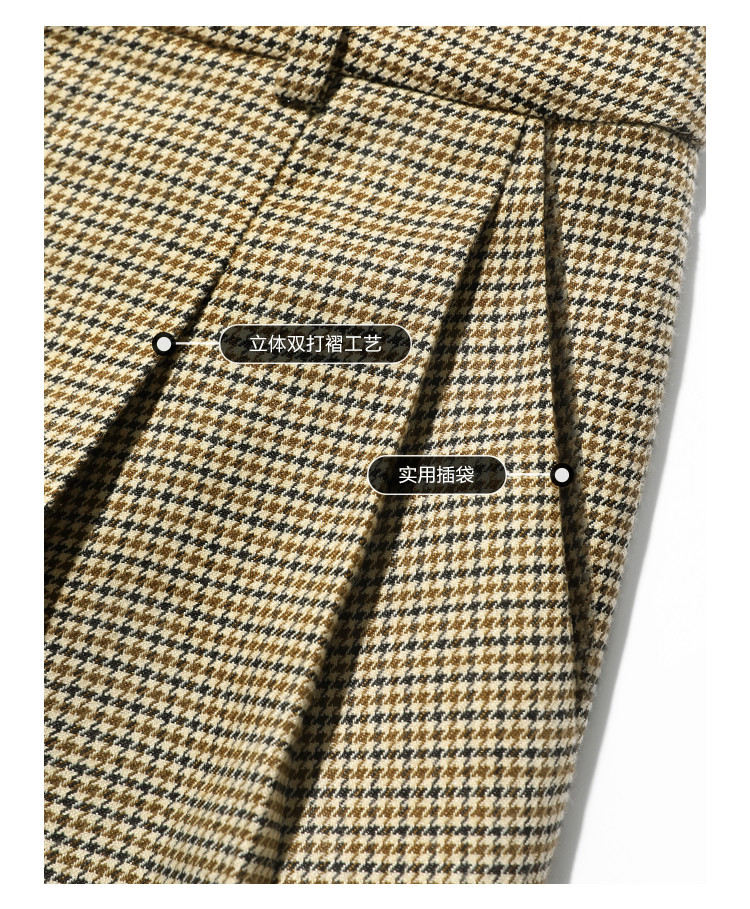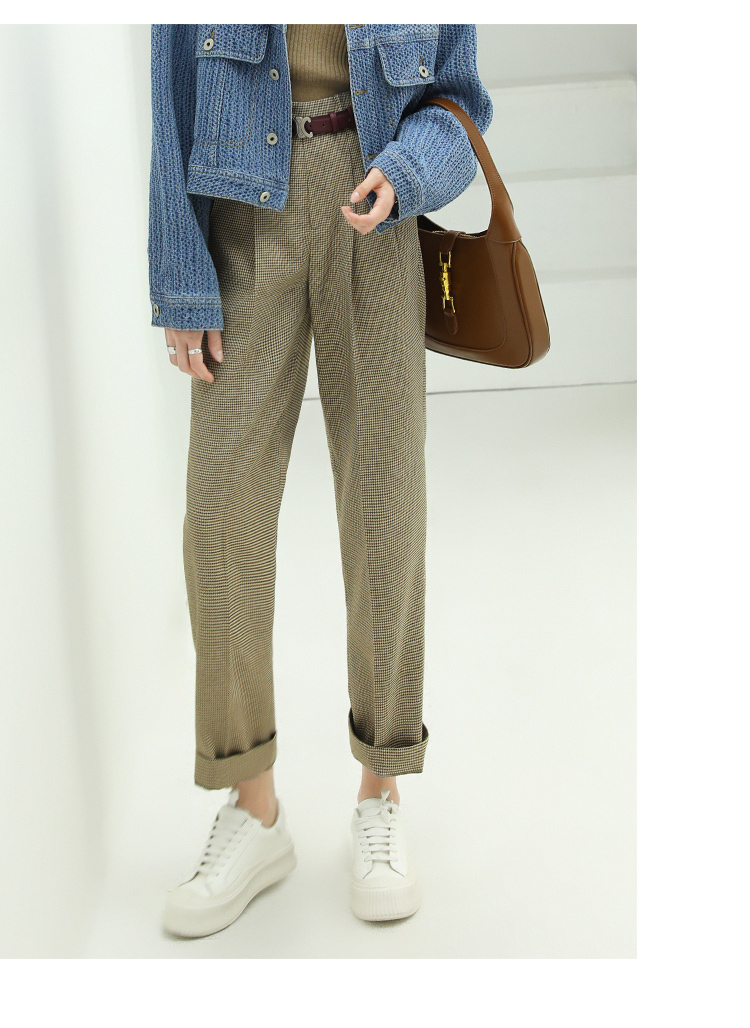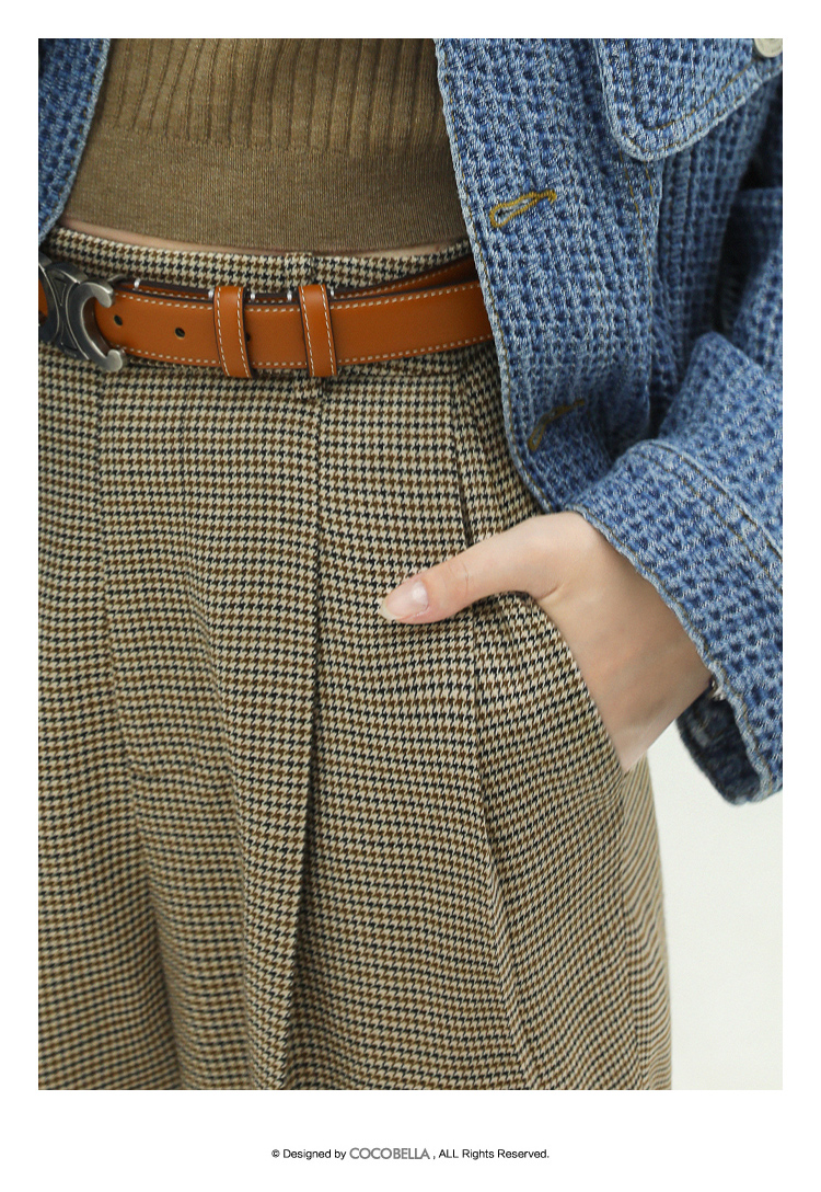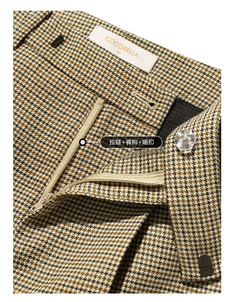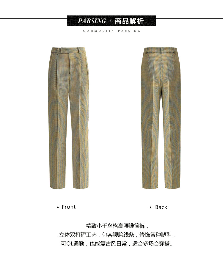 COCOBELLA千鸟格高腰打褶休闲裤女时尚通勤OL直筒西装裤PA67