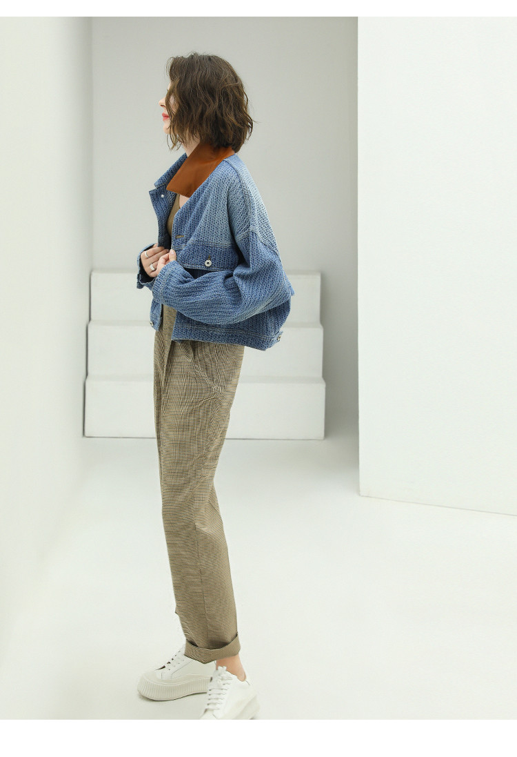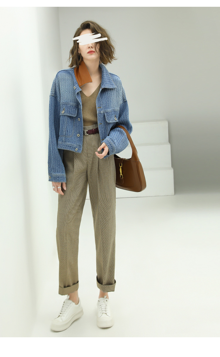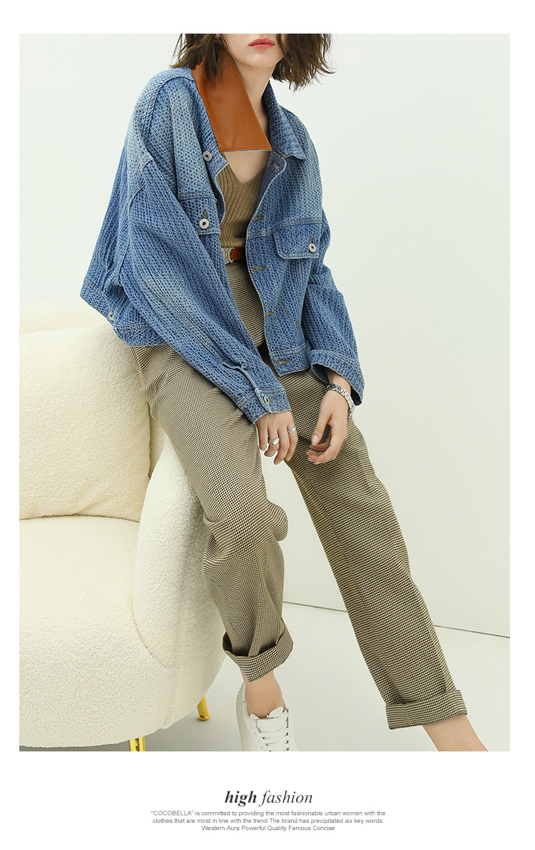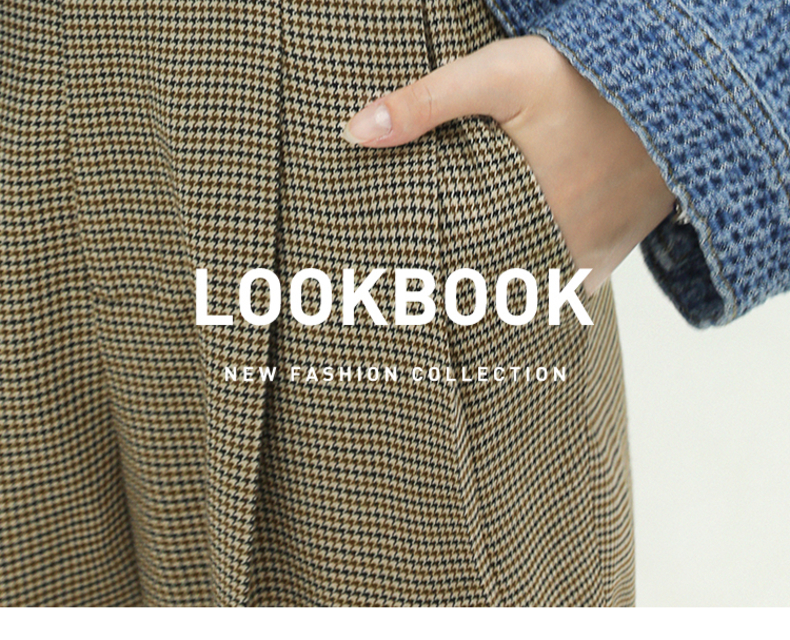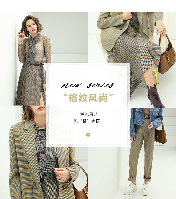 COCOBELLA千鸟格高腰打褶休闲裤女时尚通勤OL直筒西装裤PA67