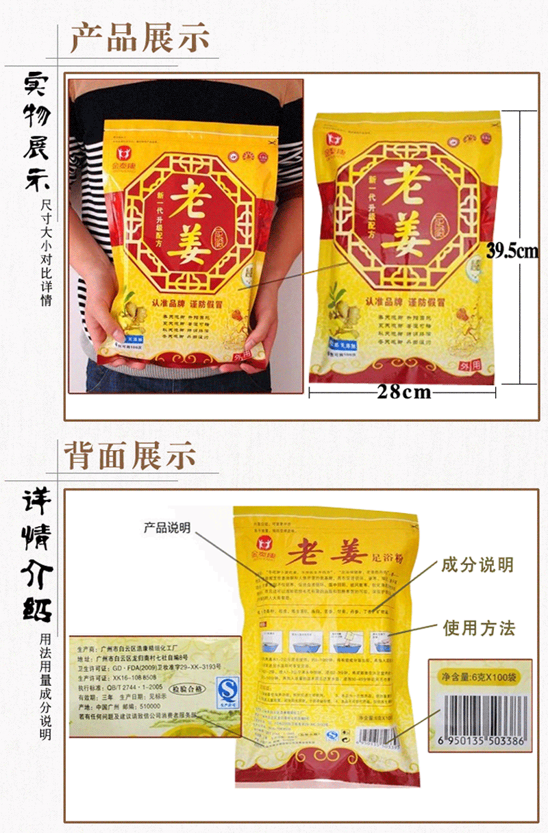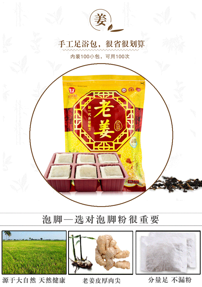 金泰康 加量装老姜泡脚粉足浴粉100小包装泡脚包足浴粉足光粉