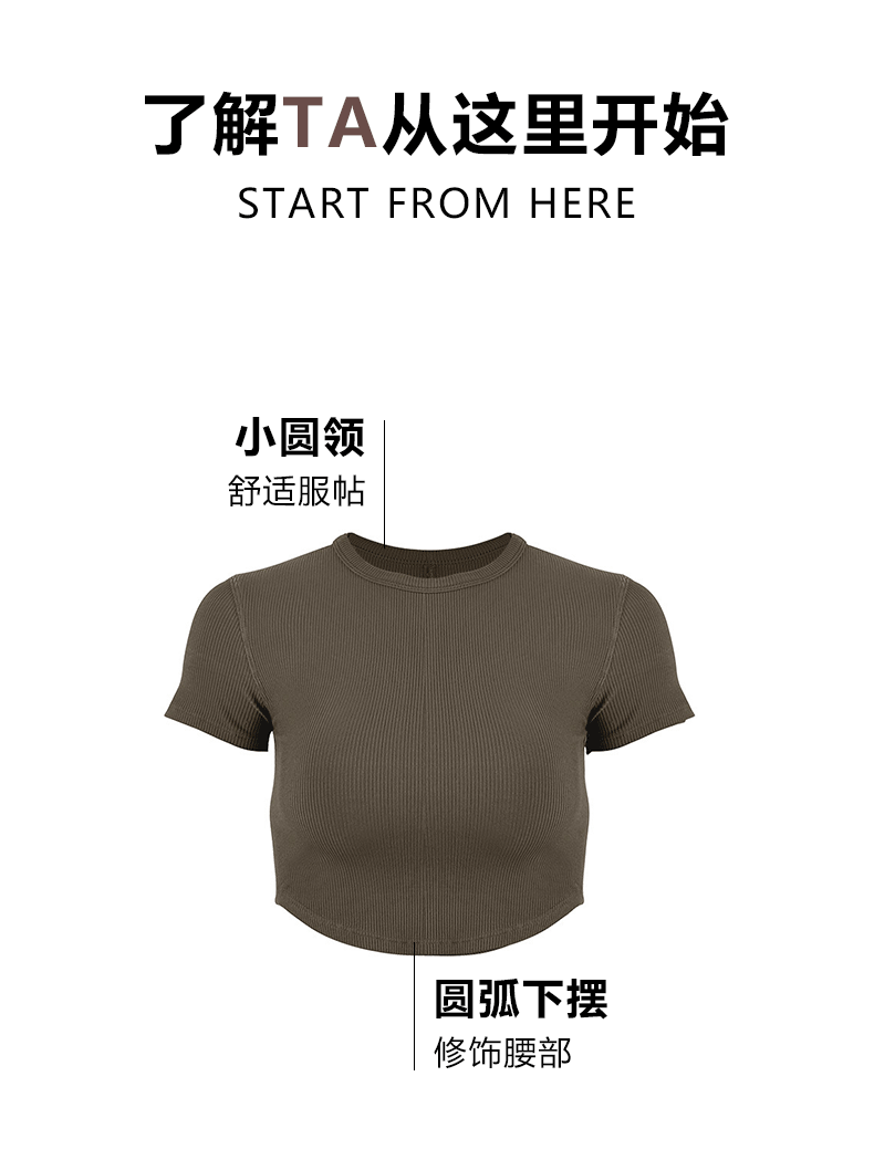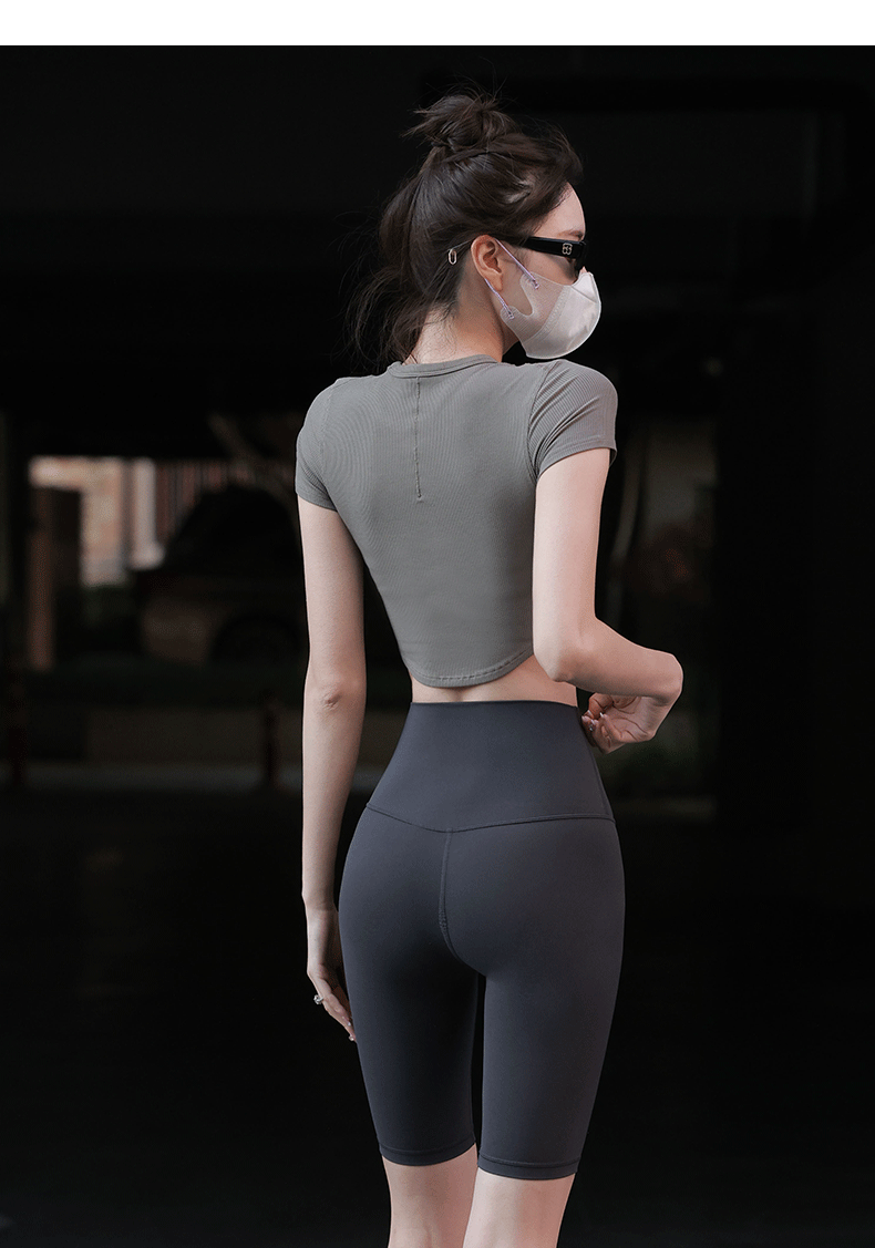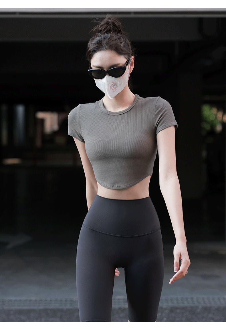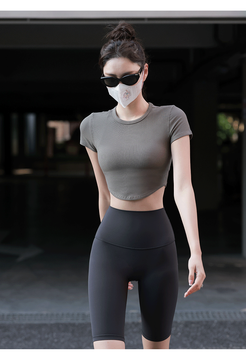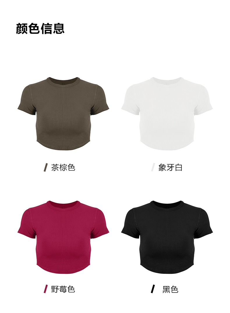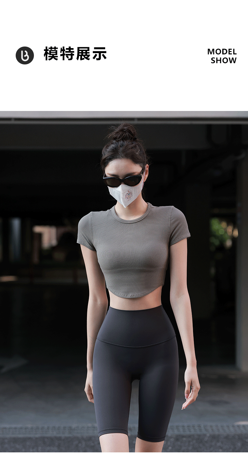 beemen短款运动短袖 螺纹清凉面料 显瘦显高 小个子瑜伽健身服运动T恤