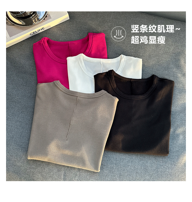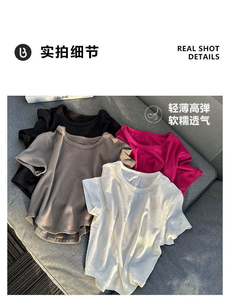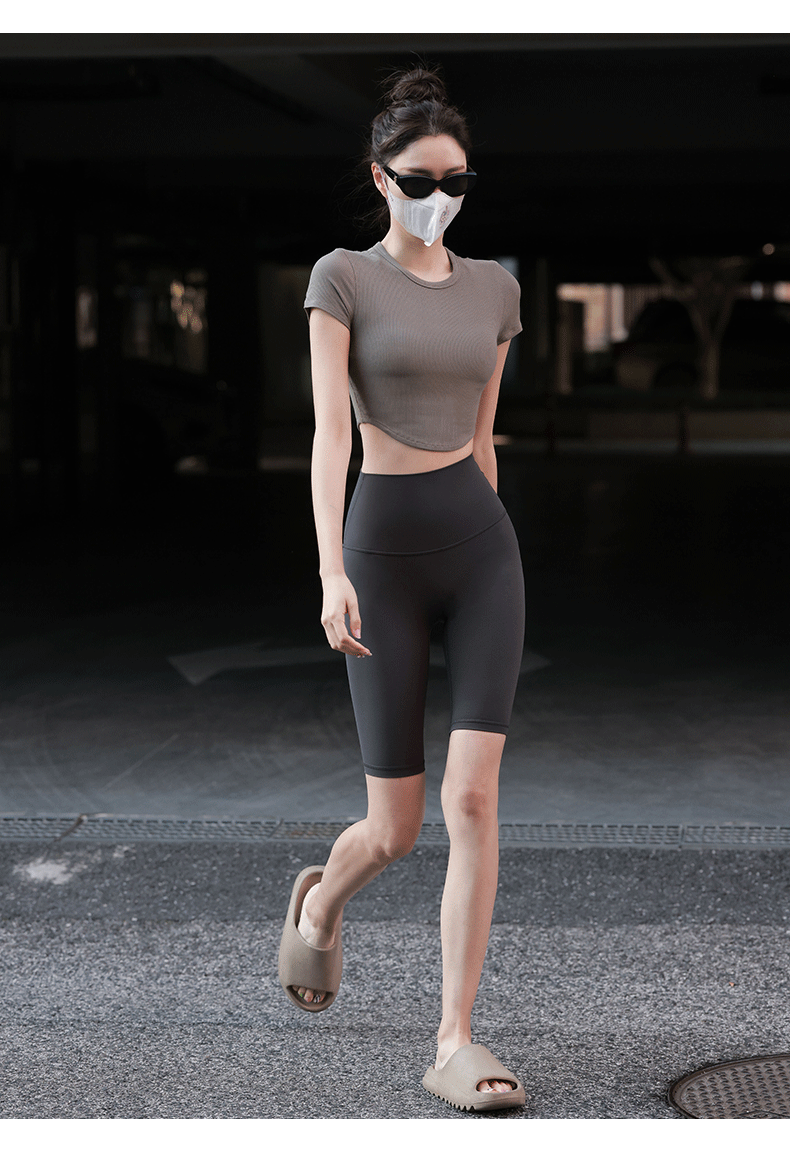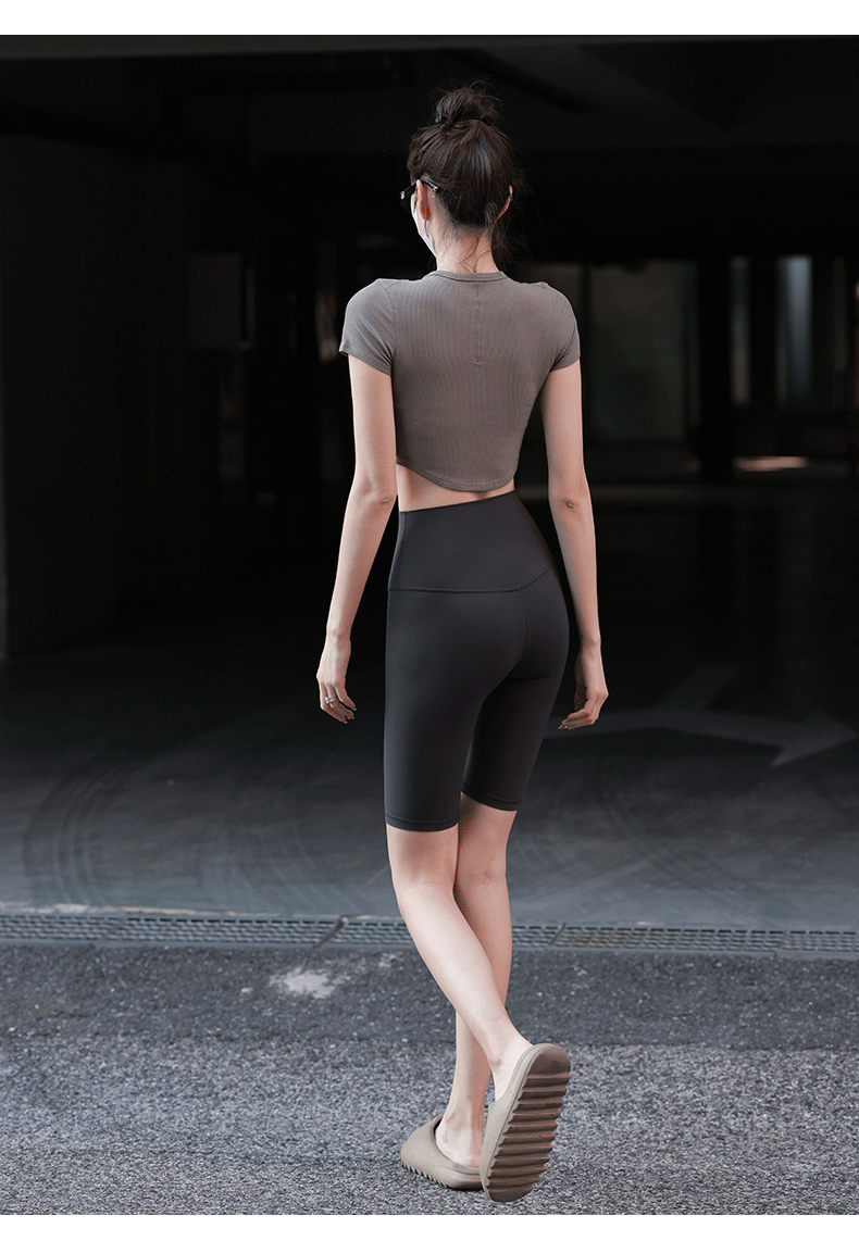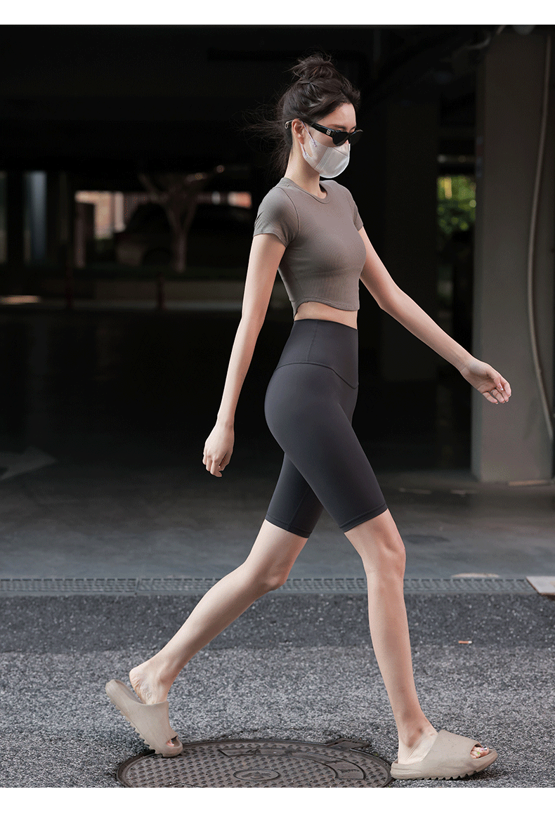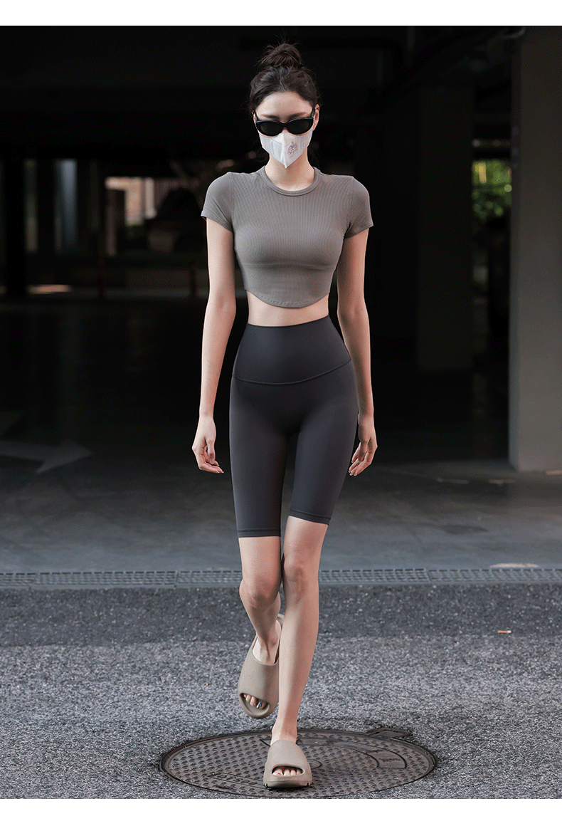 beemen短款运动短袖 螺纹清凉面料 显瘦显高 小个子瑜伽健身服运动T恤