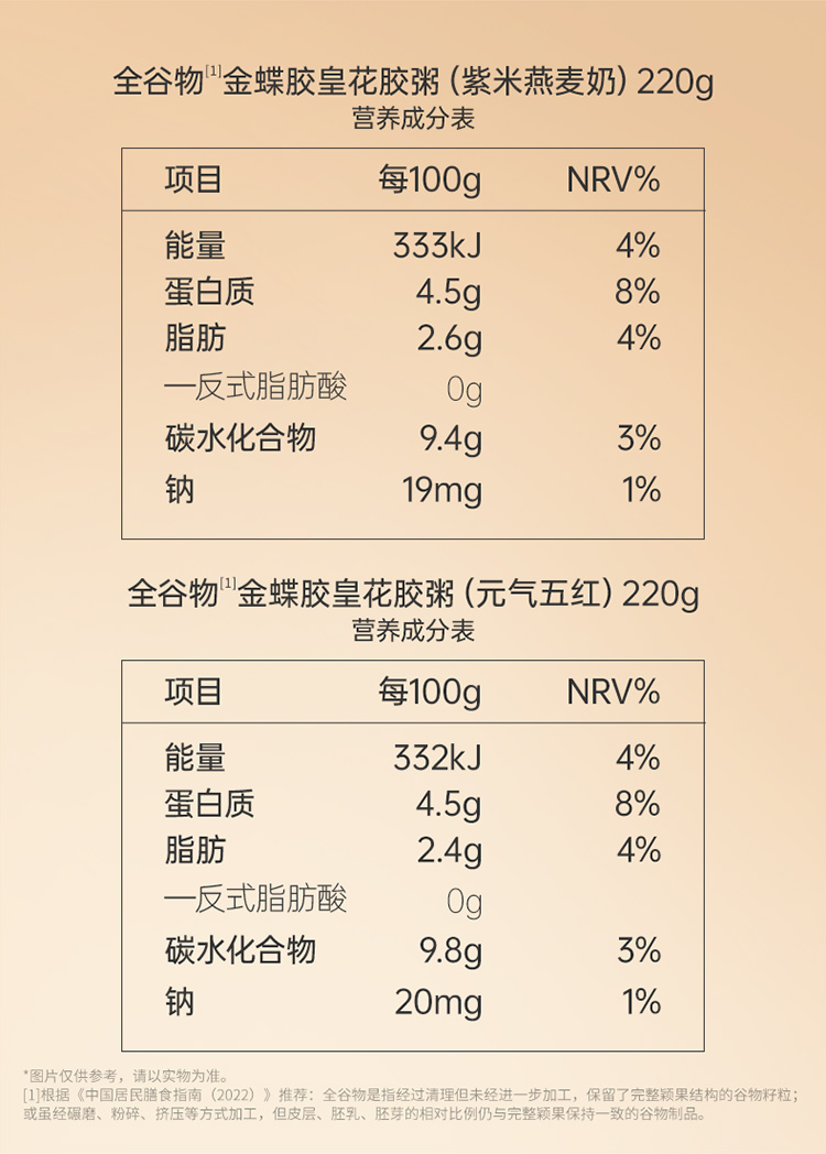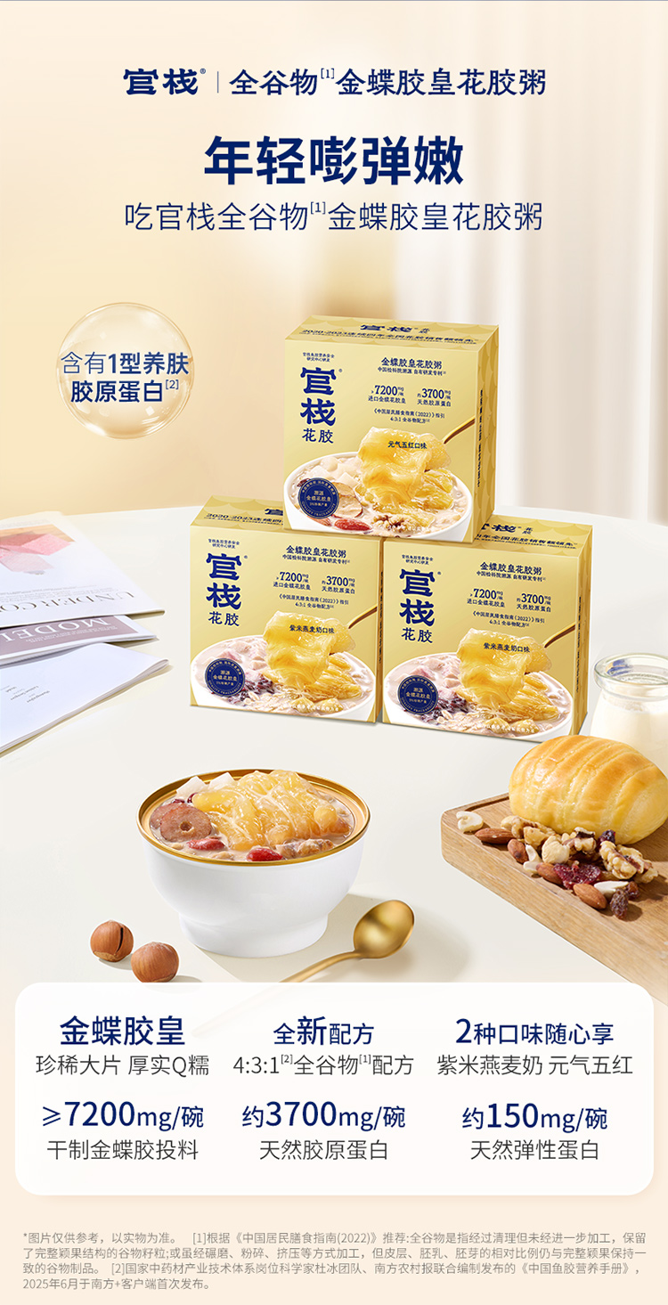 【京东南岗职场内购专享 | 尝鲜组合】官栈即食金蝶胶皇花胶粥220g+养宫系列花胶羹180g+轻享胶38g