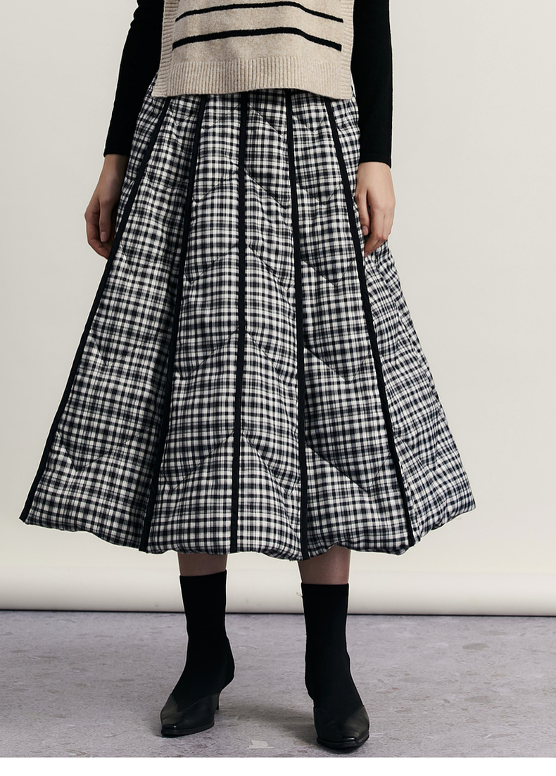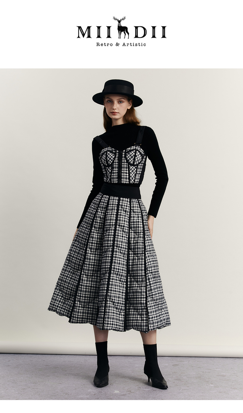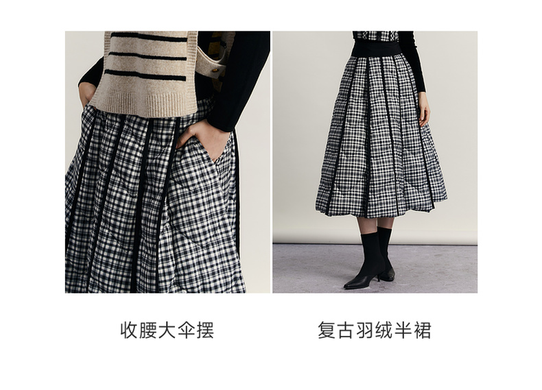 谜底羽绒半身裙女2023冬季新款复古特色格纹A型大摆长裙234MY1590