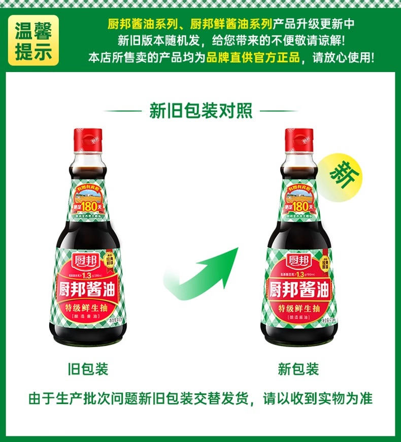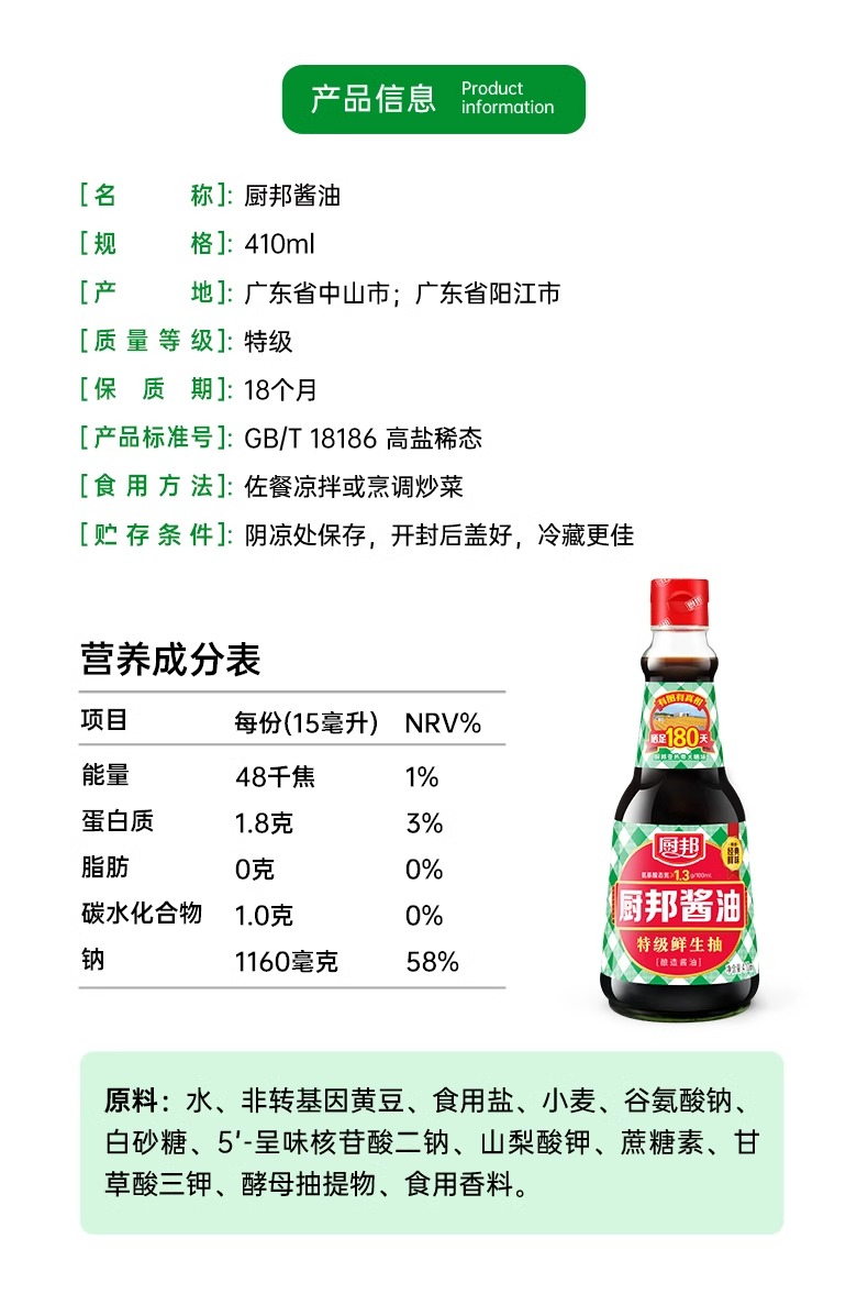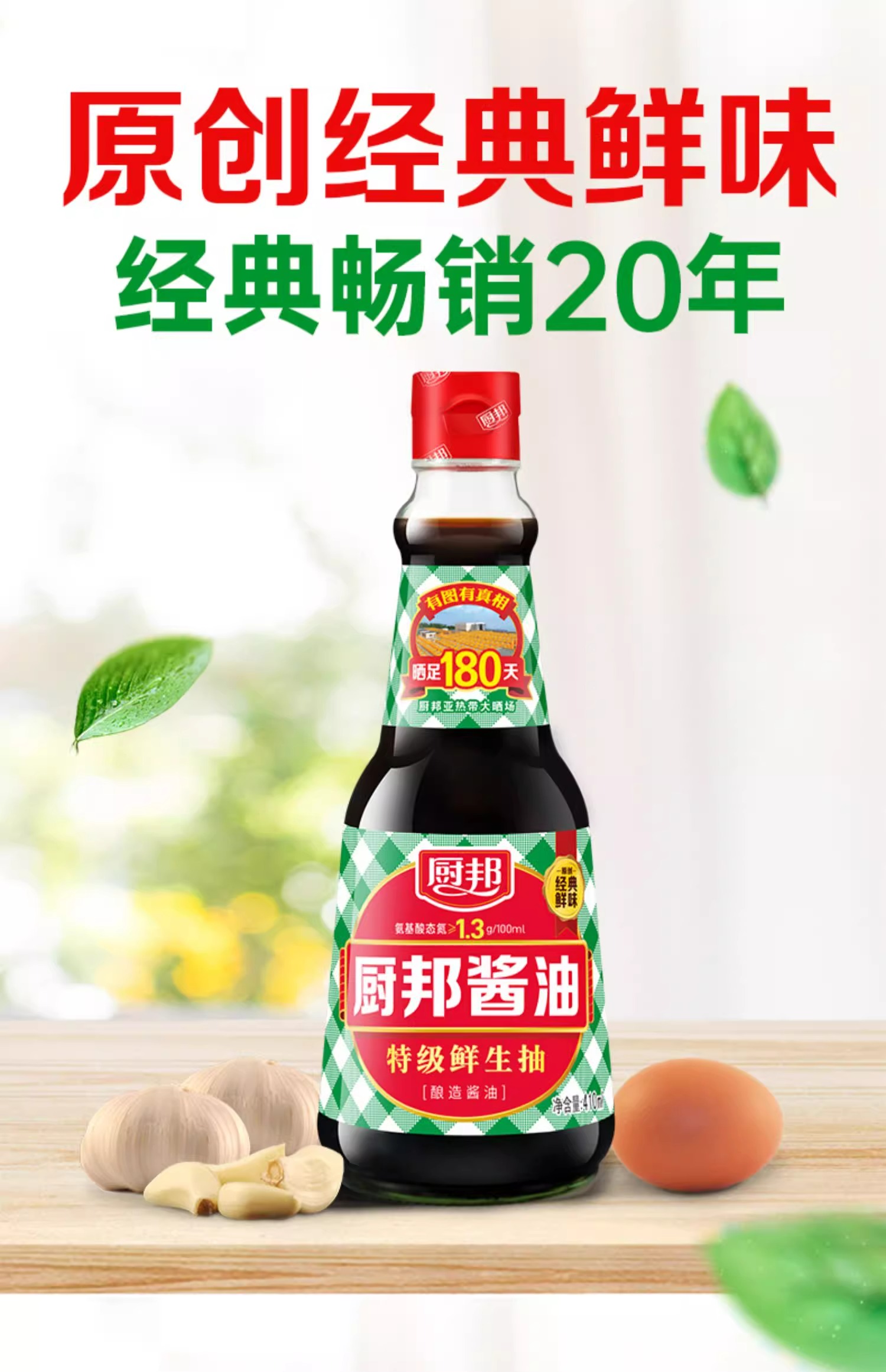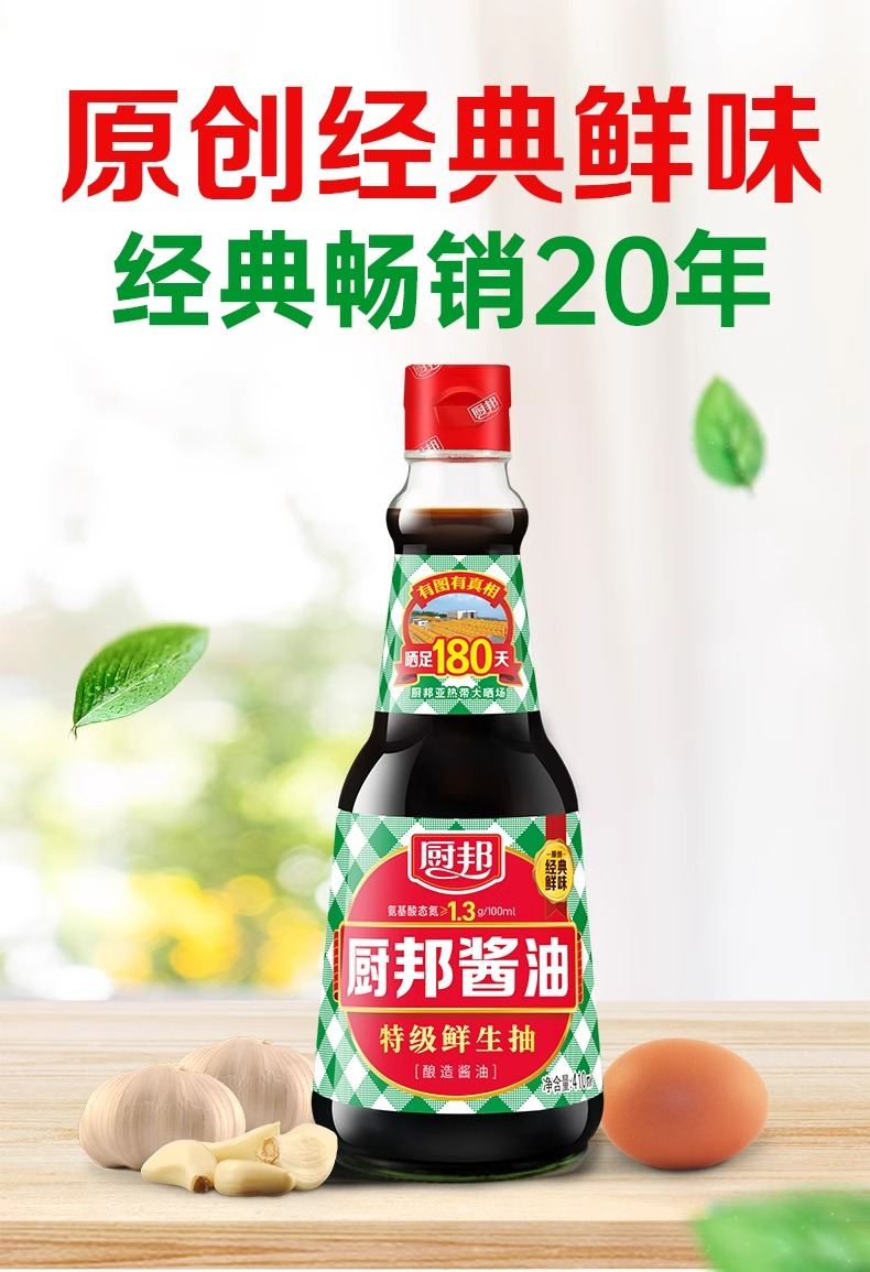 厨邦酱油410ml特级生抽家用瓶装炒菜烹饪红烧蒸鱼腌肉蘸酱调味料LY