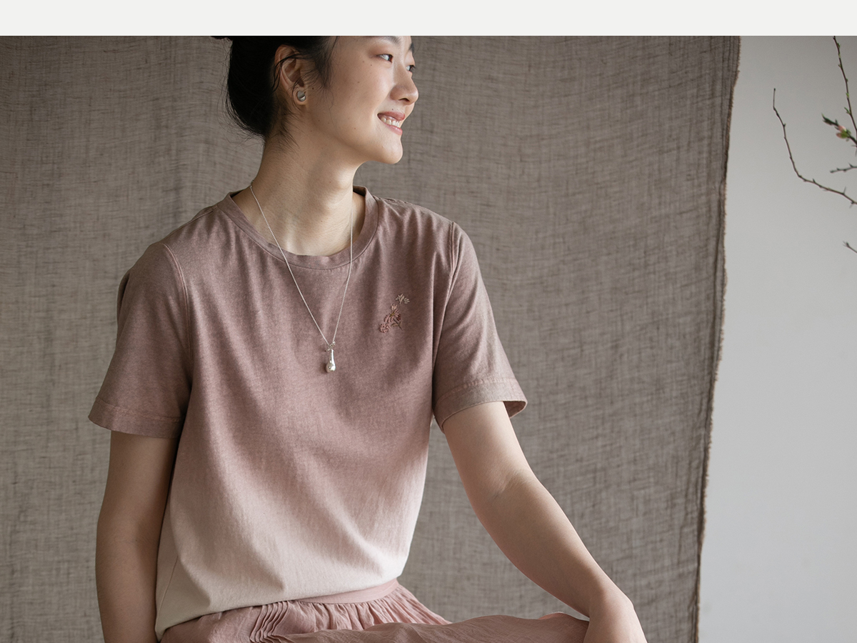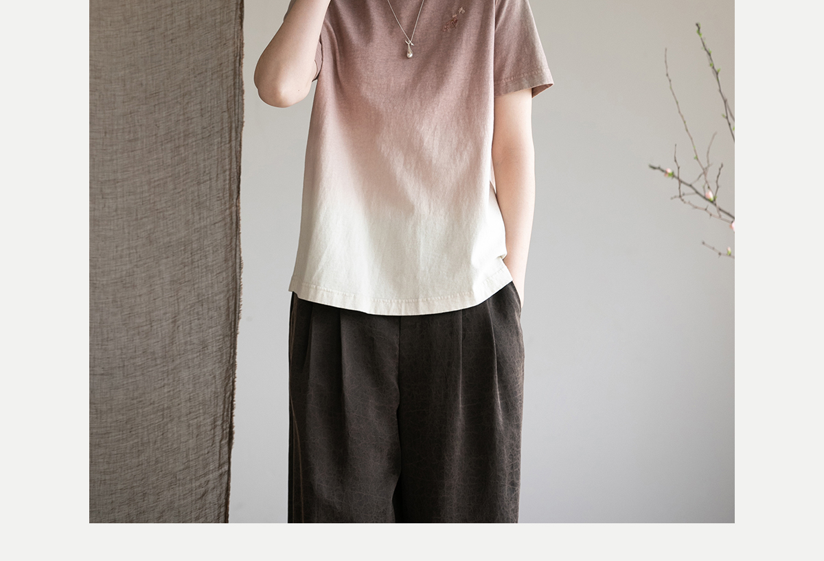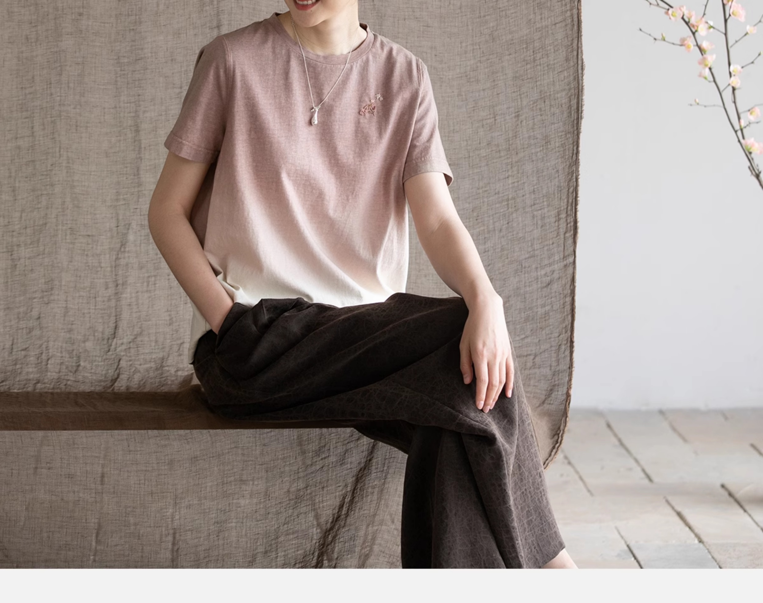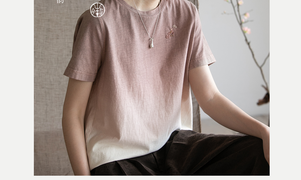 牧衣游原创 手工刺绣吊染棉质T恤夏季新品设计感文艺短袖 云泥边