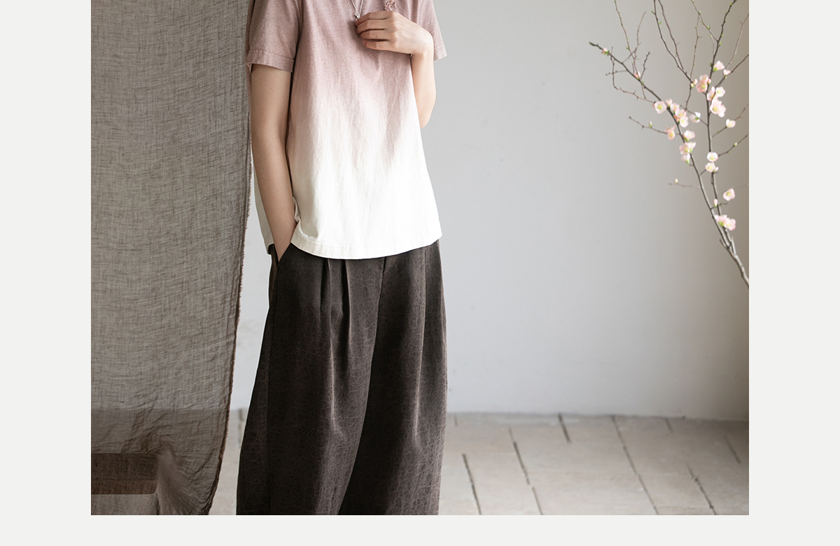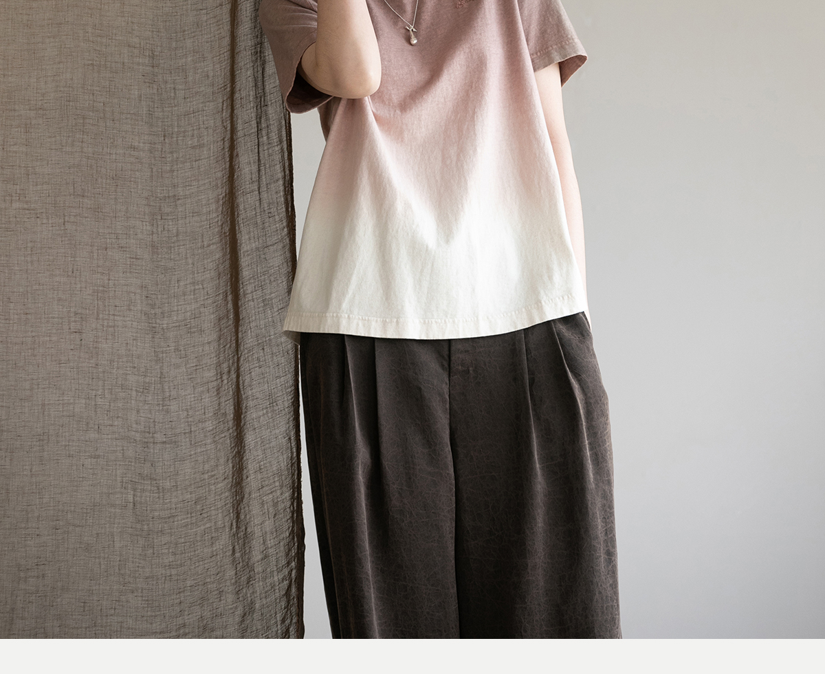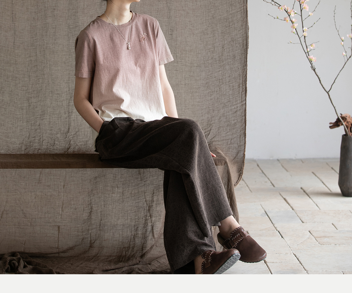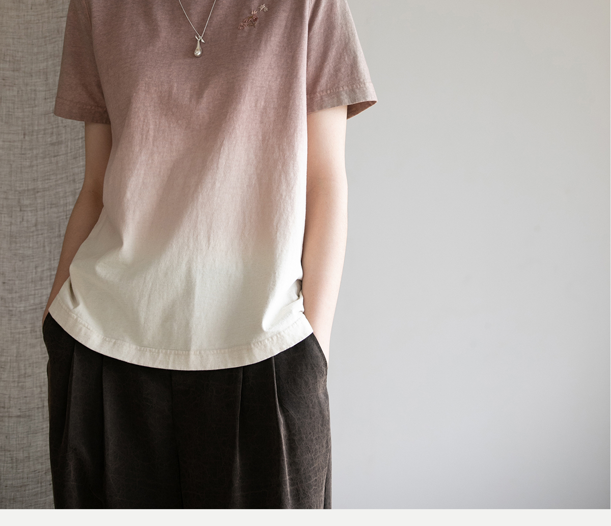 牧衣游原创 手工刺绣吊染棉质T恤夏季新品设计感文艺短袖 云泥边