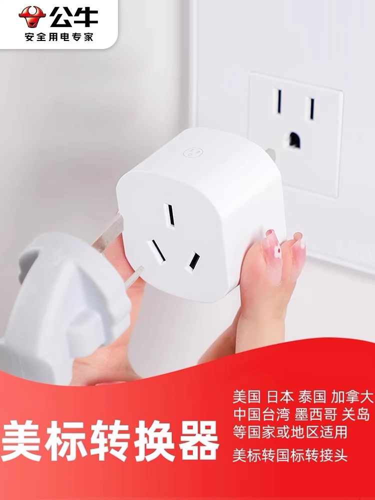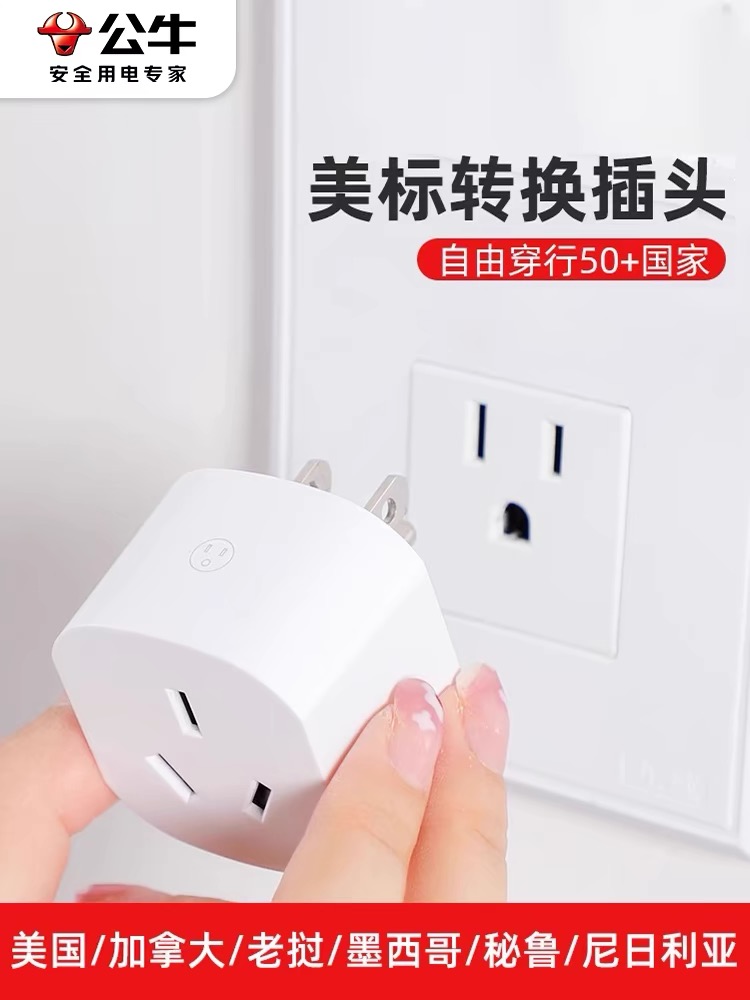 公牛美标国家旅行转换插头 出国国外美标转国标901A 适用美国加拿大日本中国台湾 1个
