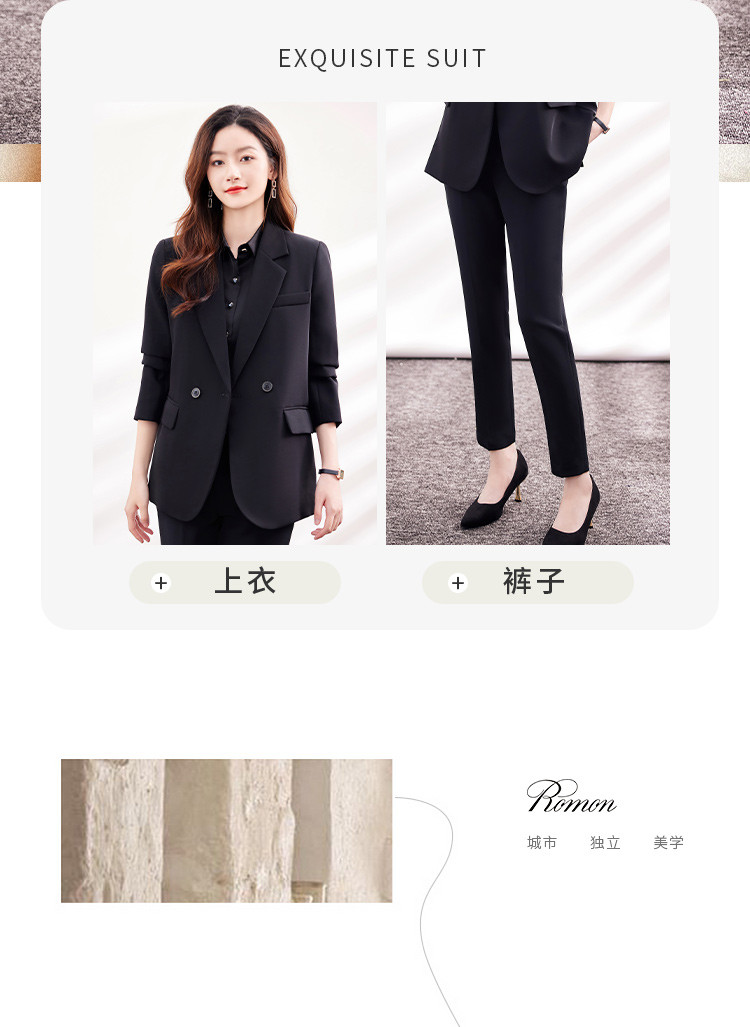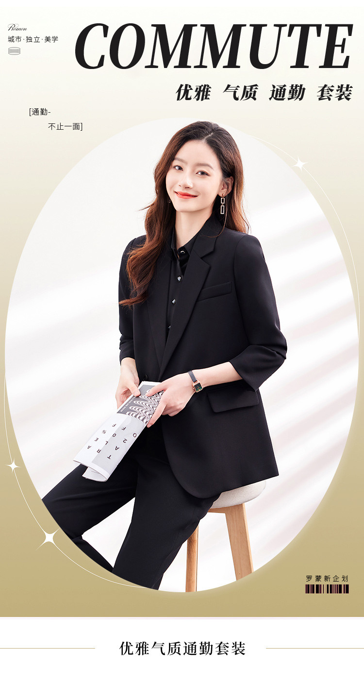 【上衣+裤子】罗蒙女式套装商务通勤气质百搭后摆侧开叉西装两件套女