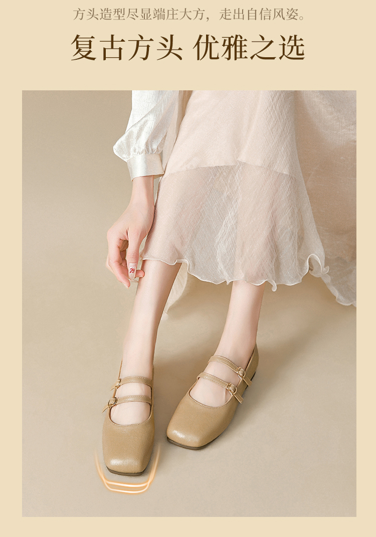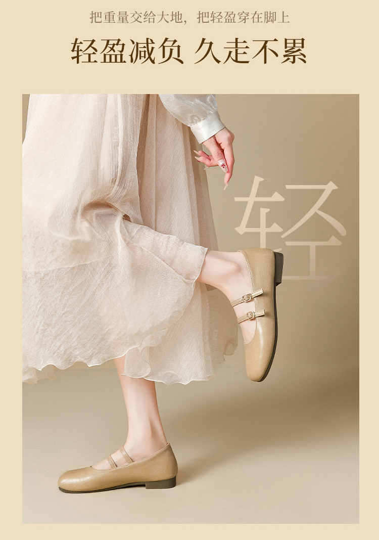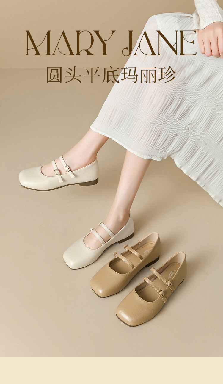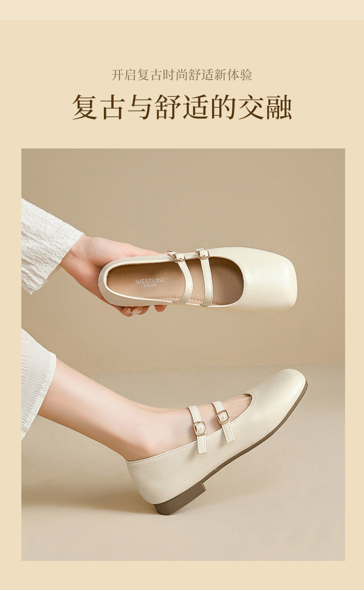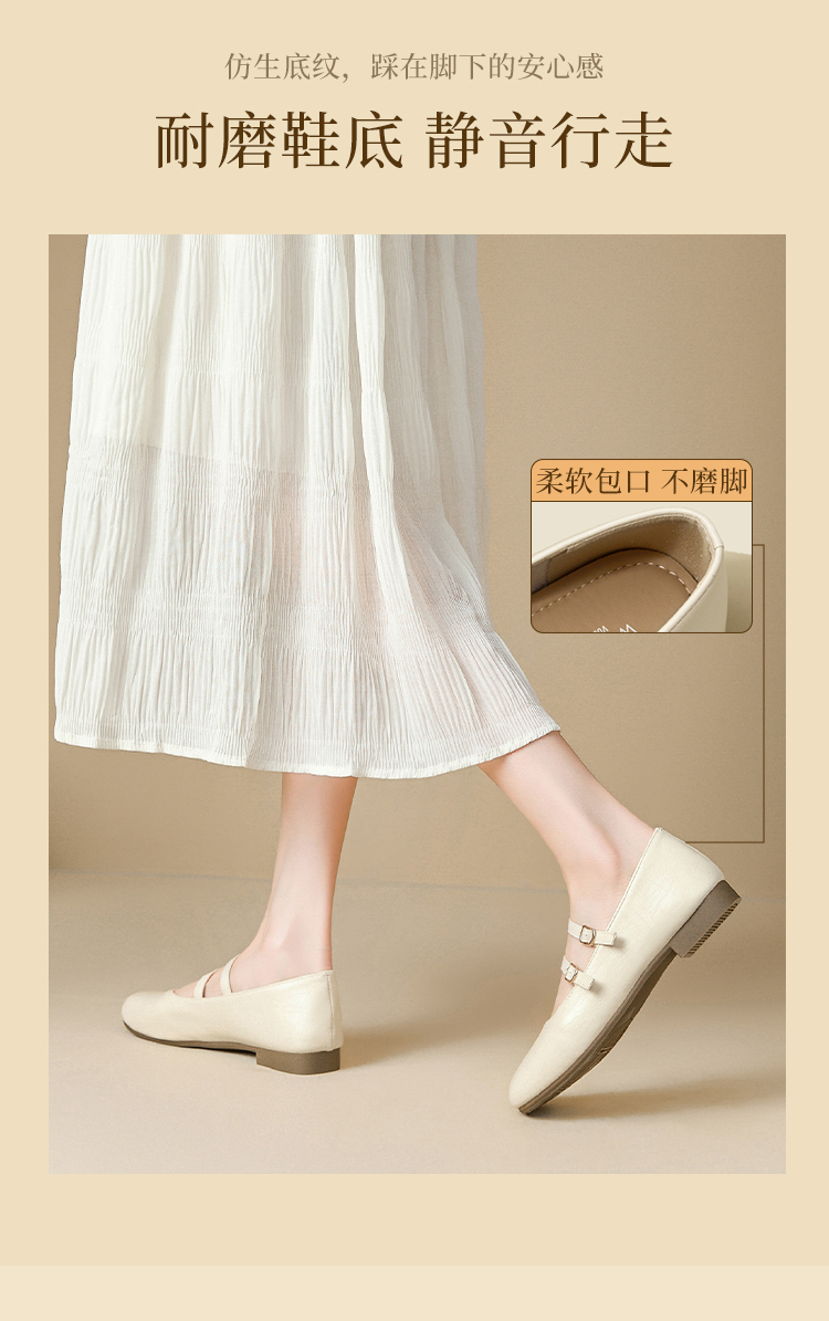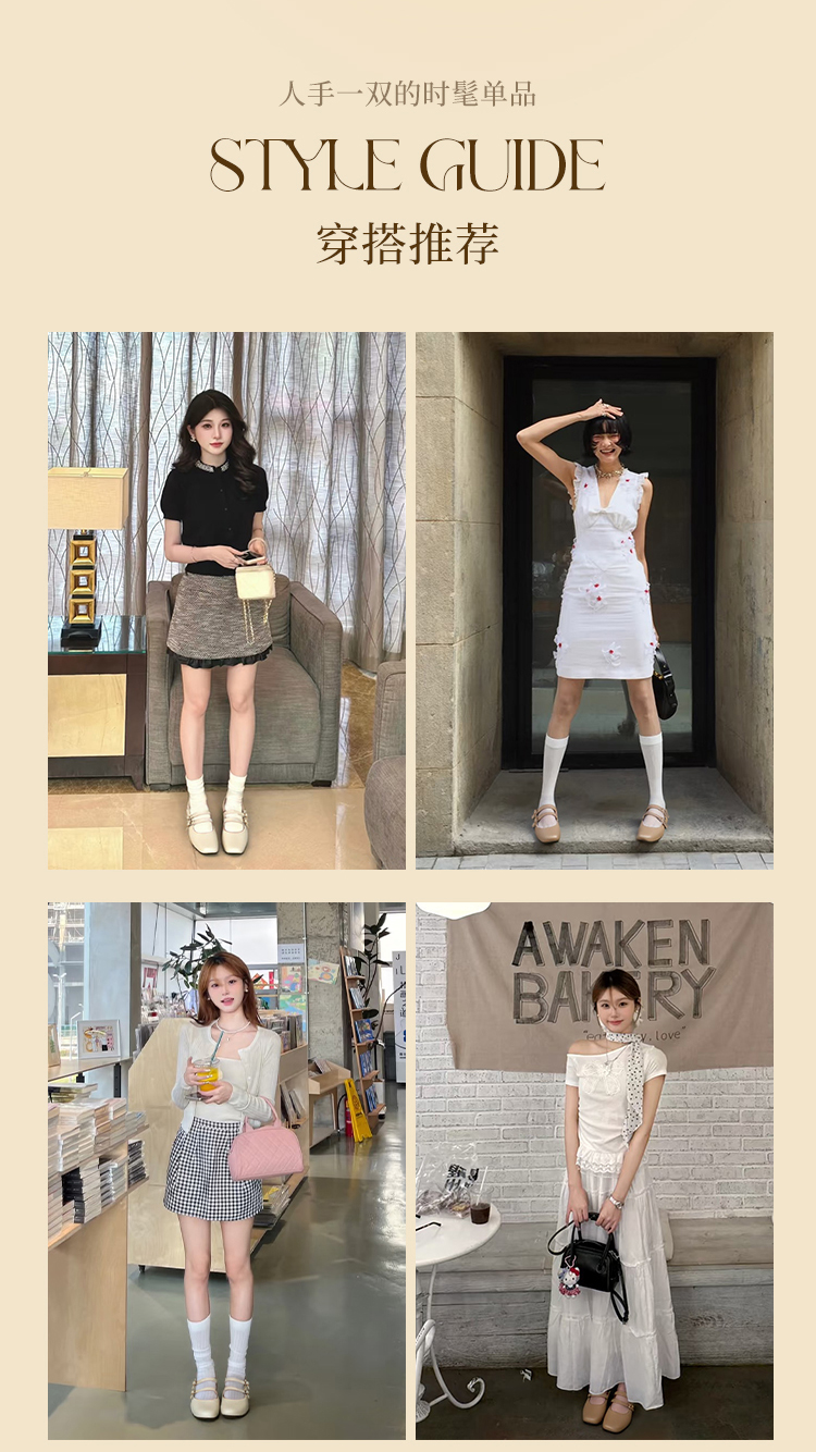 西遇玛丽珍小皮鞋女新款春夏法式圆头平底鞋配裙子白色单鞋V0656456