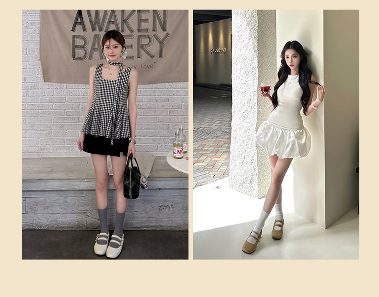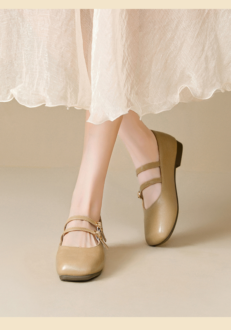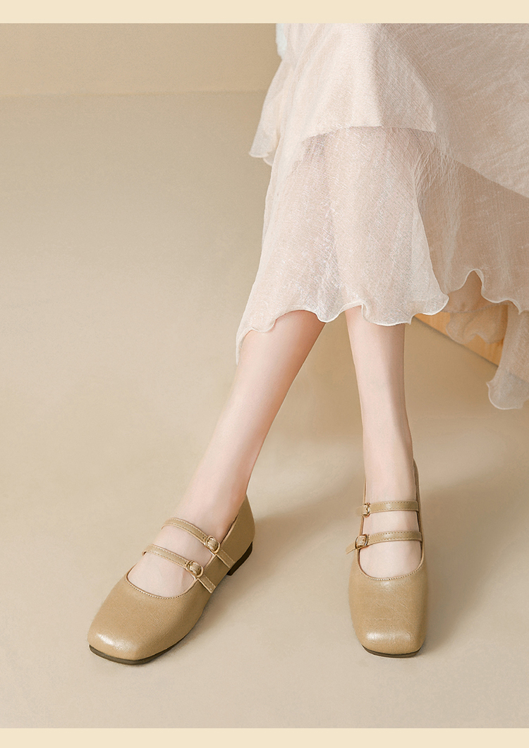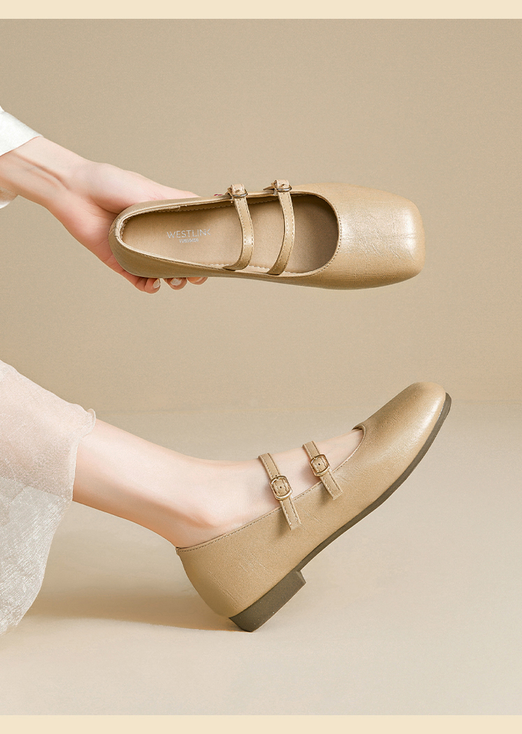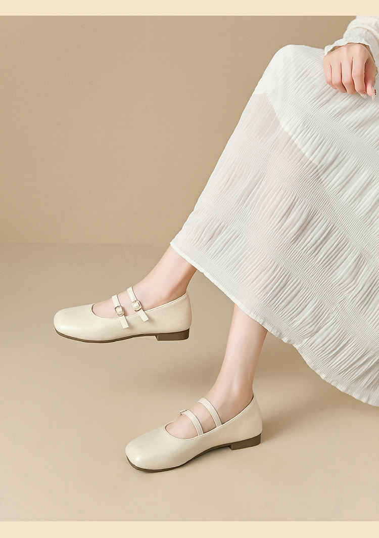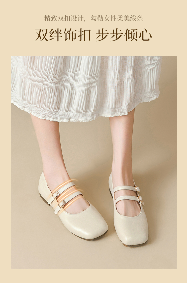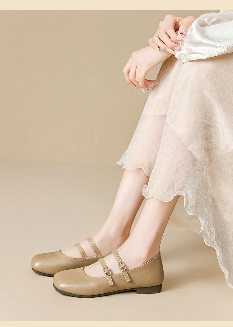 西遇玛丽珍小皮鞋女新款春夏法式圆头平底鞋配裙子白色单鞋V0656456
