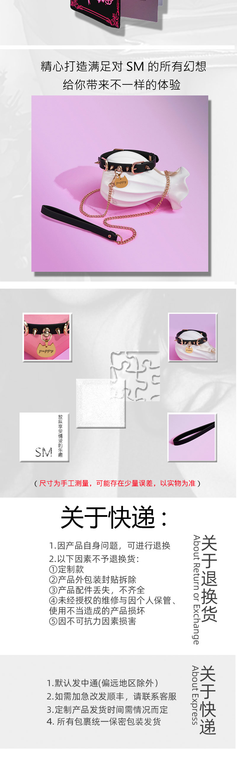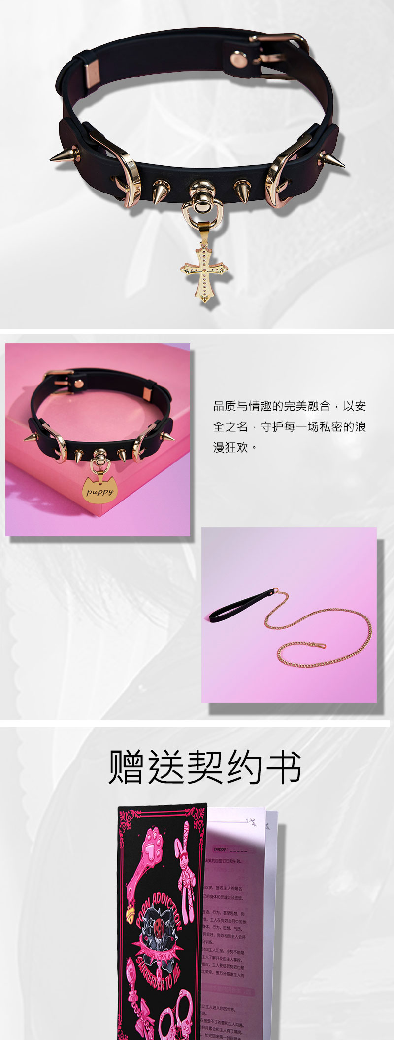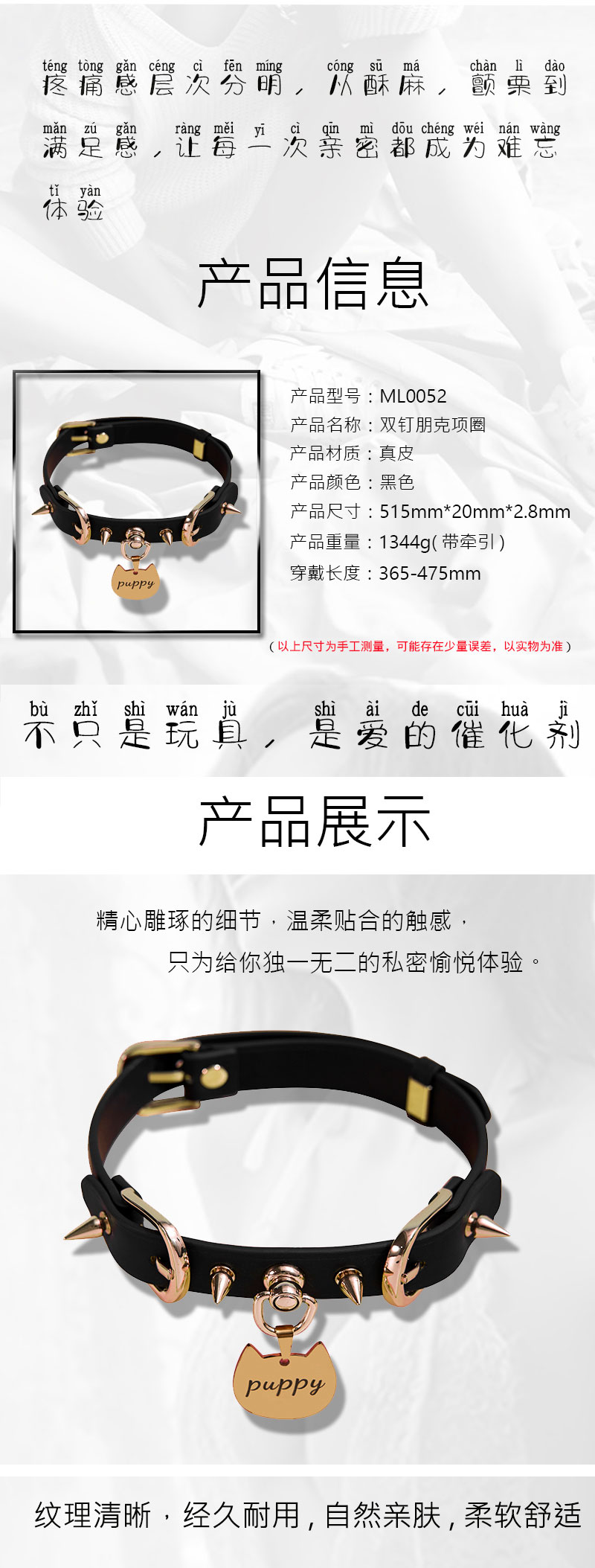 魅灵温变 曜石黑真皮朋克铆钉项圈 项圈+牵引