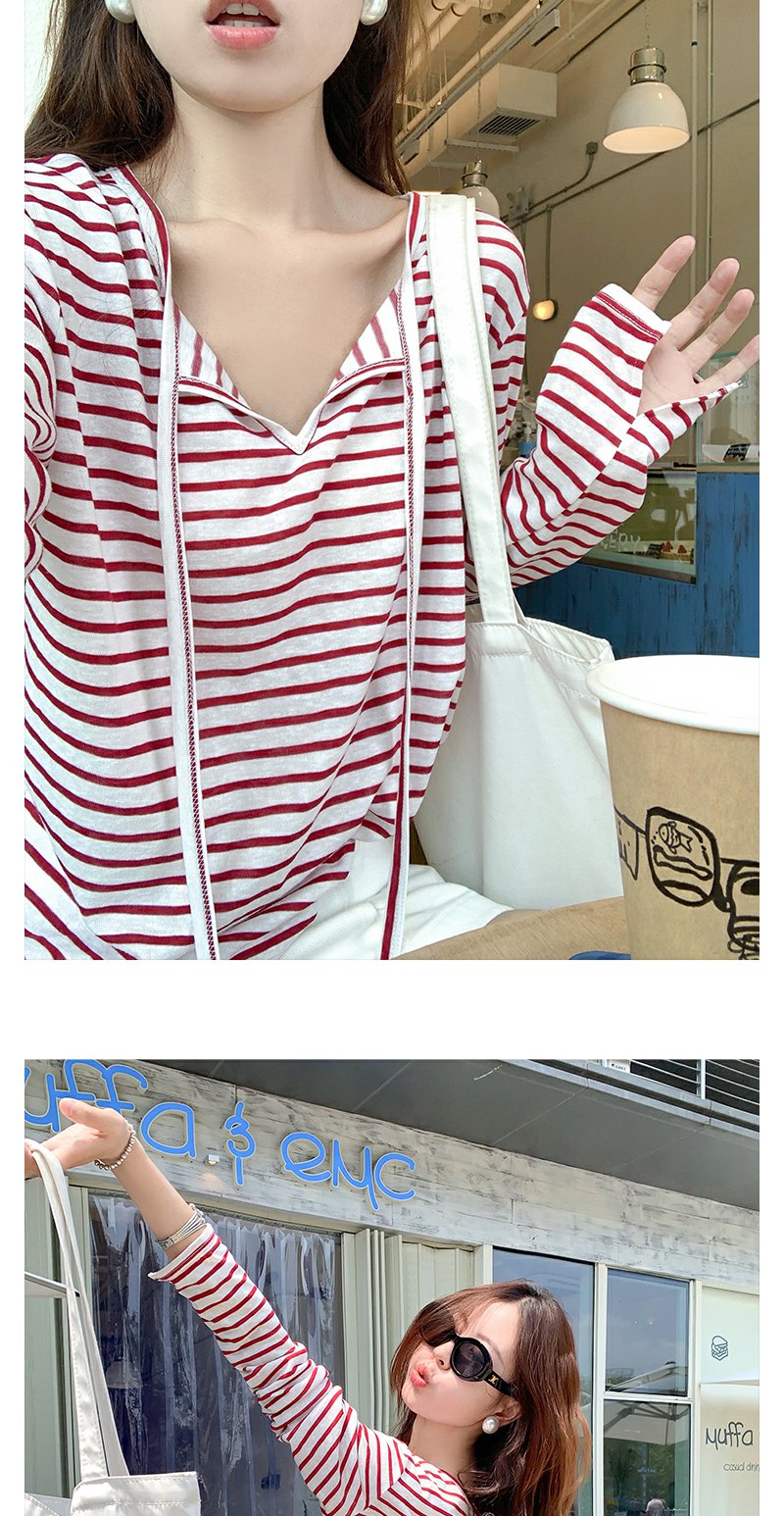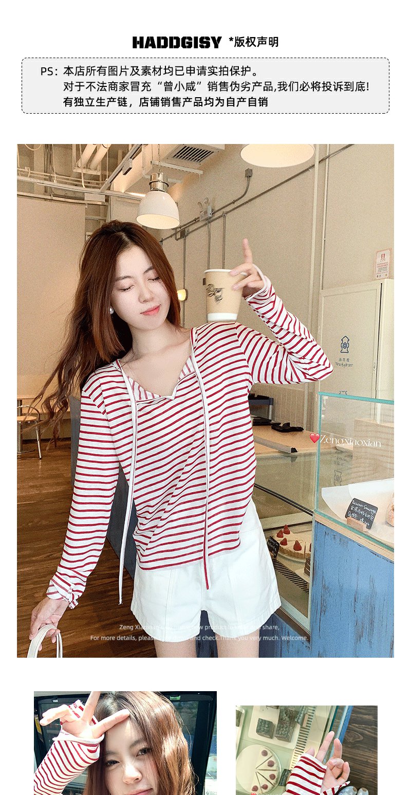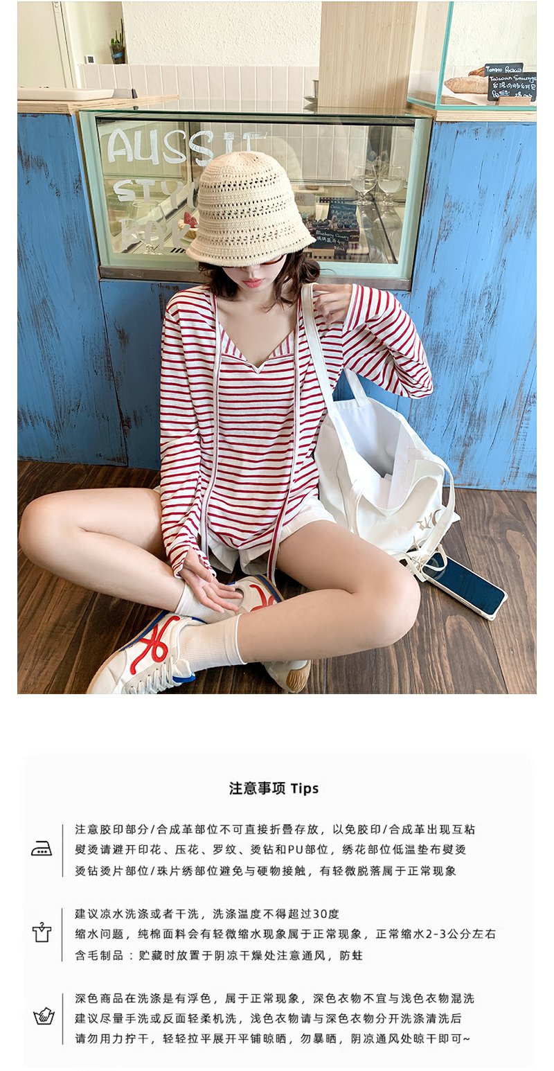 <曾小咸推荐>韩系条纹设计慵懒风长袖T恤【预售款,预计3-15天发货】
