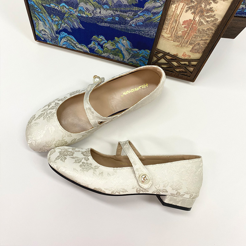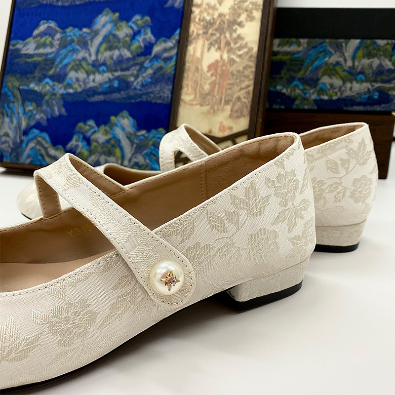 壁虎瑜伽 国风任意门【缎光】新中式缎面低跟鞋【5天发货】
