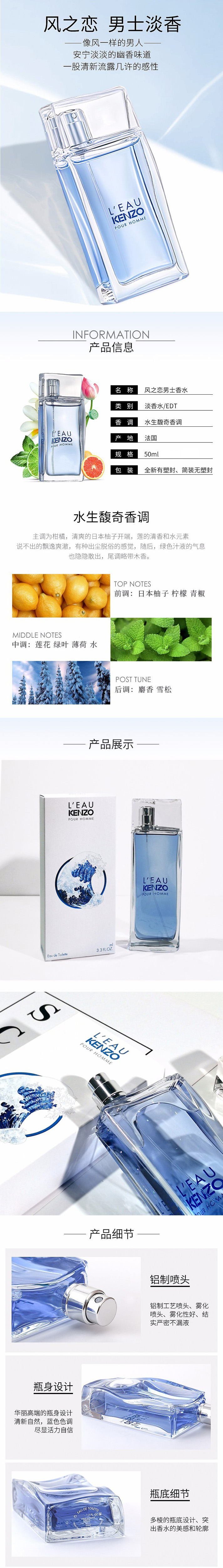 法国 高田贤三凯卓纯净之水风之恋男士淡香水EDT50ml