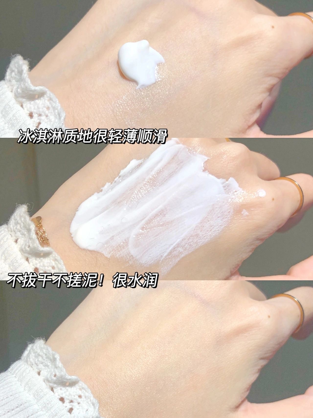 冰淇淋质地丝滑好推开,水水润润的 上脸还会爆水珠!!!