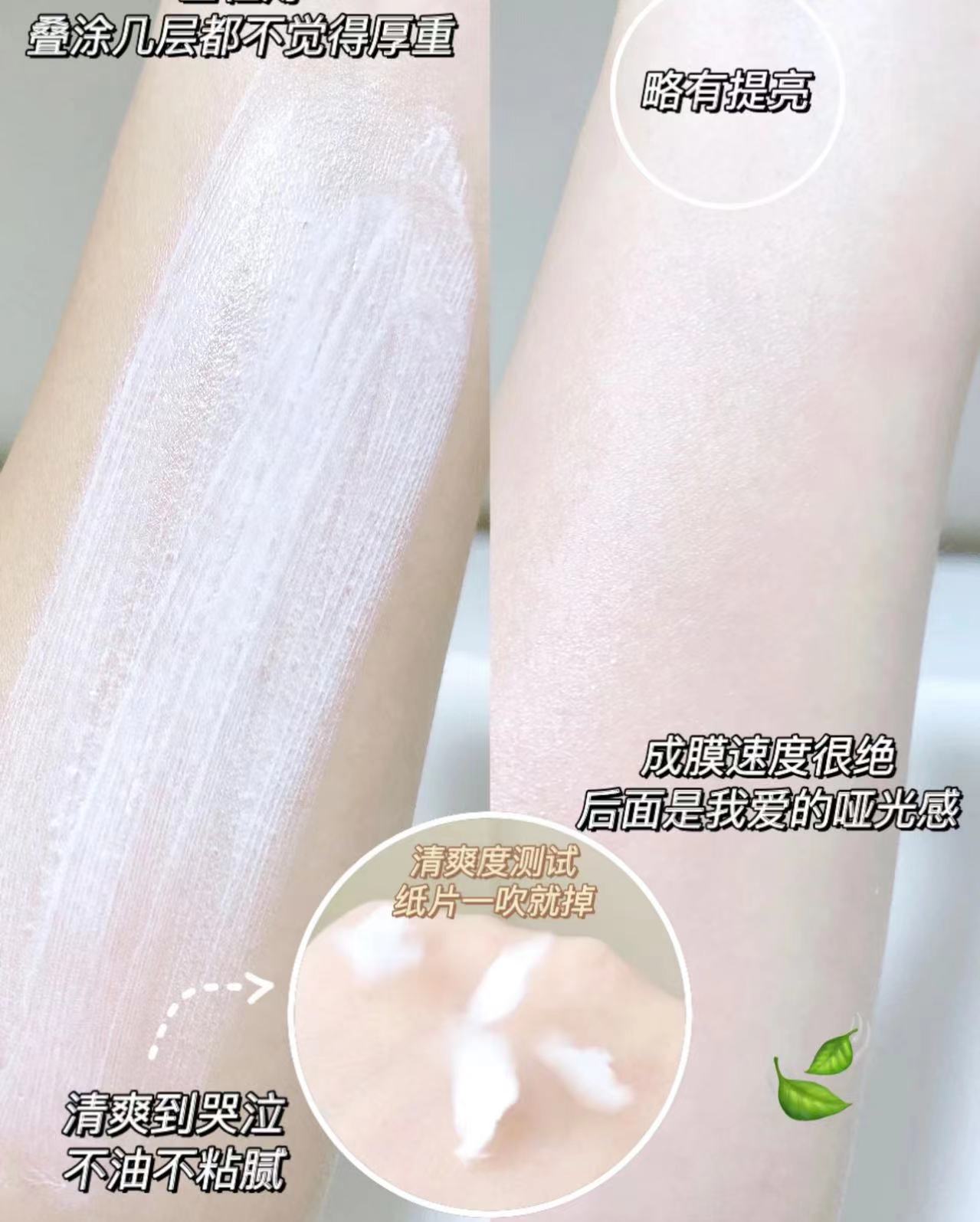 ✅上脸成膜很快,成膜后也很清爽不油腻,也不会假白