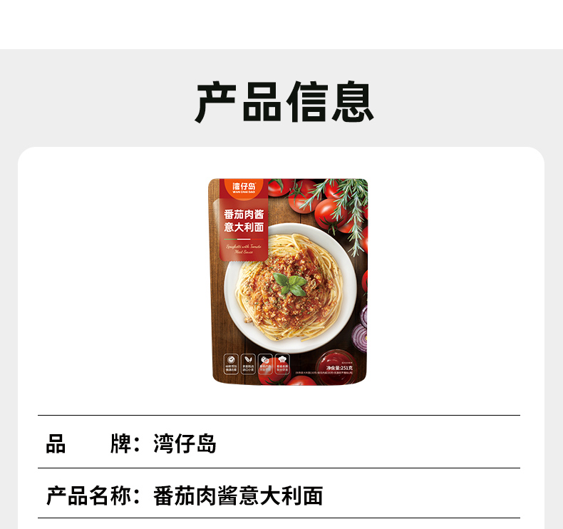 【直发】湾仔岛251g黑椒肉酱意大利面*6袋