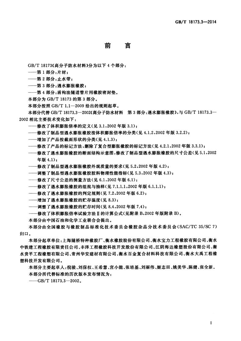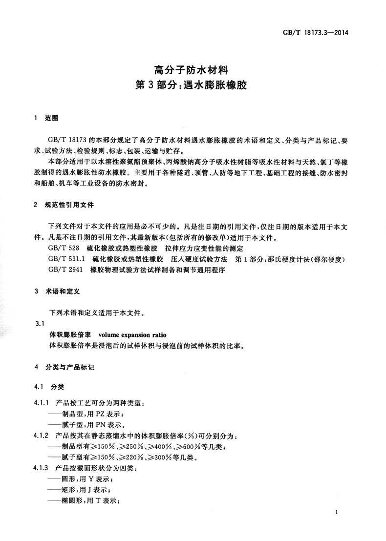 | GB/T 18173.3-2014高分子防水材料 第3部分:遇水膨胀橡胶 | ||