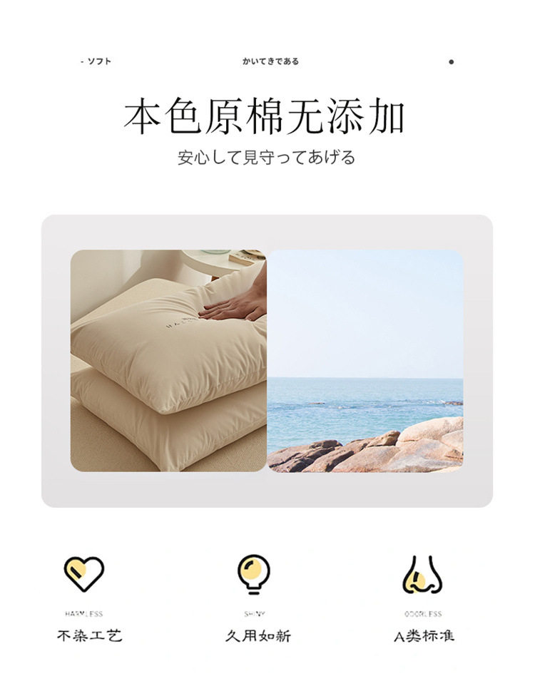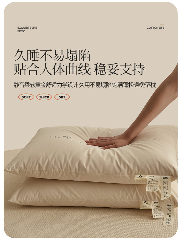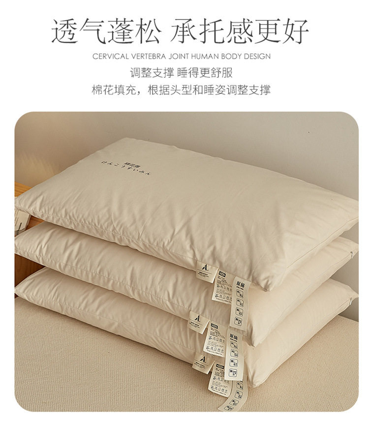 日式无印A类新疆棉花枕头软纯棉全棉花良品枕芯助睡眠棉花填充