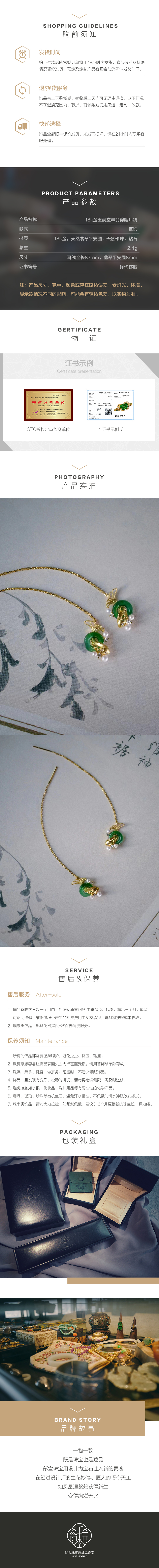 龢盒原创 18k金玉满堂翠翡锦鲤耳线/耳钉 耳环