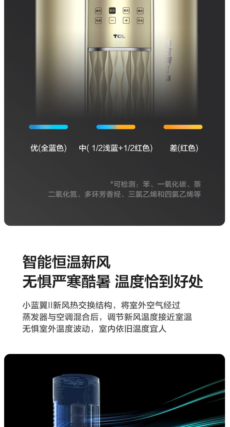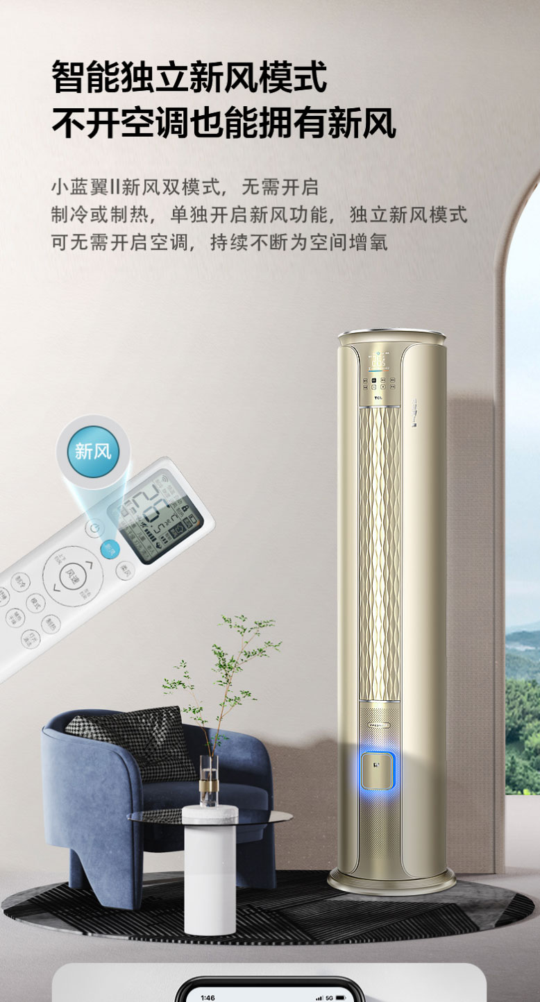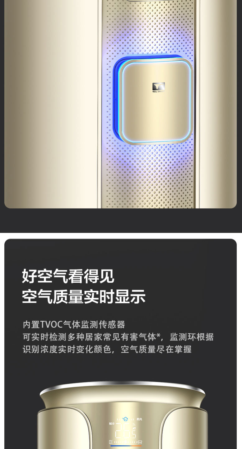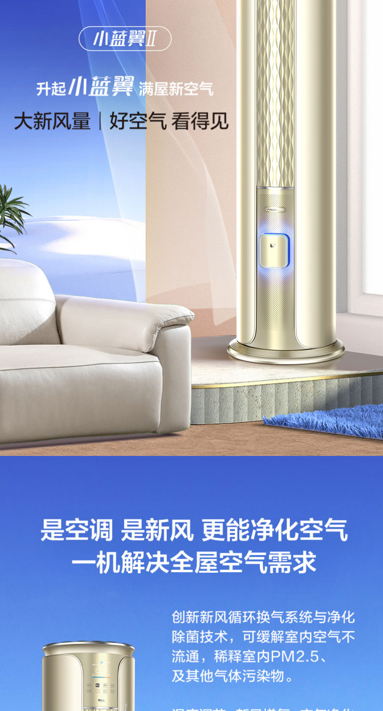 TCL新风空调大2匹新一级变频冷暖新风量200m³/h小蓝翼Ⅱ立柜式空调KFRd-51LW/DBp-XCA11+B1