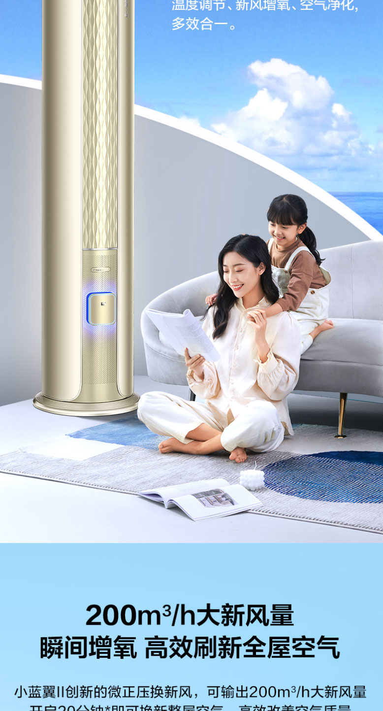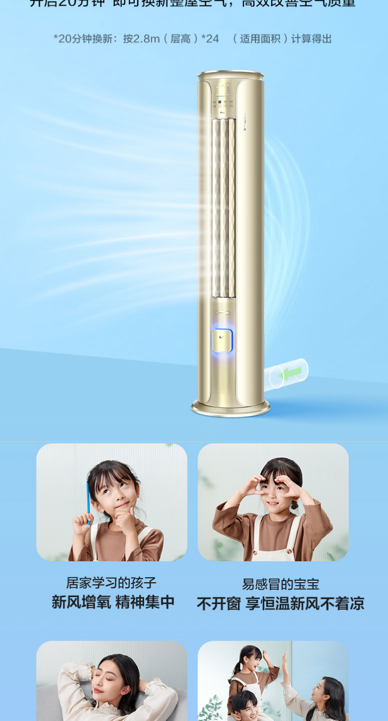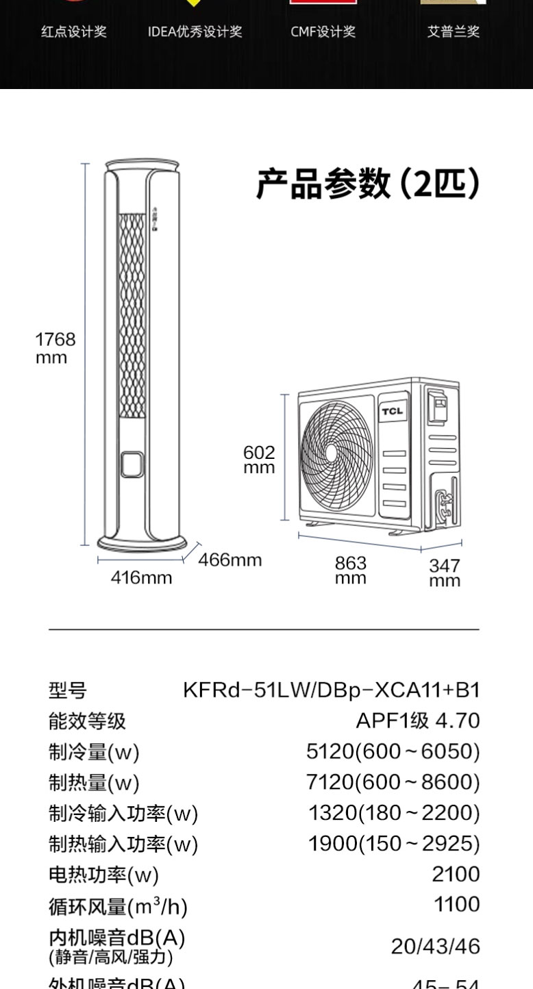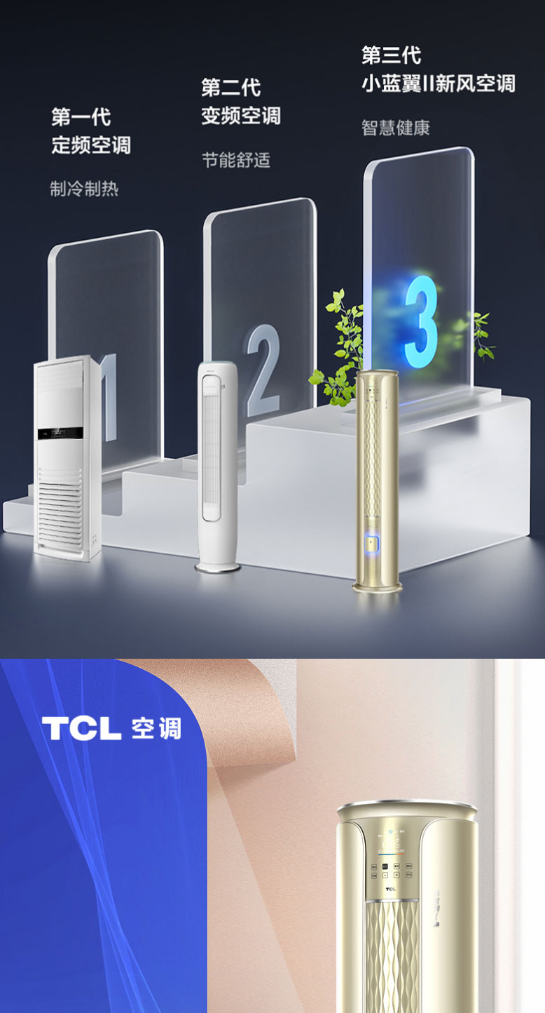 TCL新风空调大2匹新一级变频冷暖新风量200m³/h小蓝翼Ⅱ立柜式空调KFRd-51LW/DBp-XCA11+B1