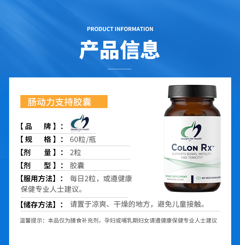 【效期至27年8月】肠动力支持胶囊 designs for health Colon Rx 60粒/瓶