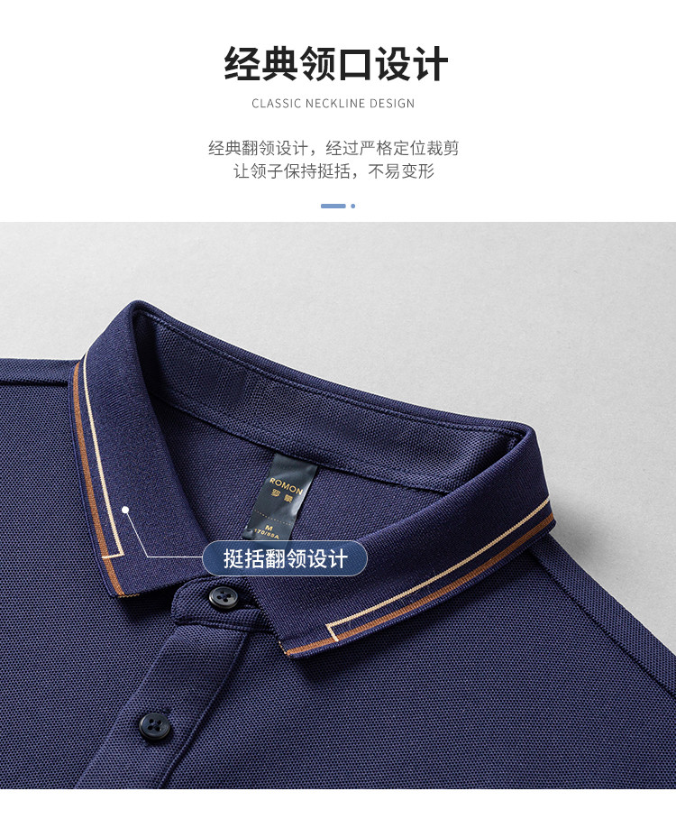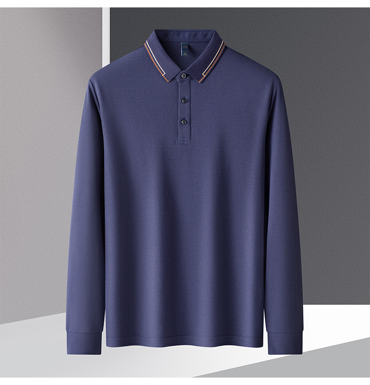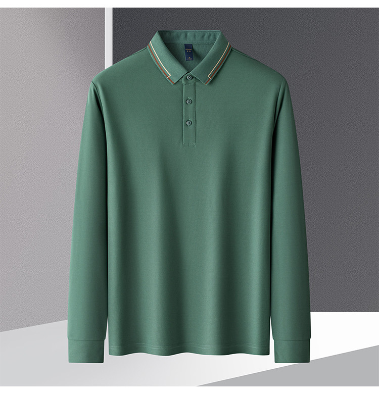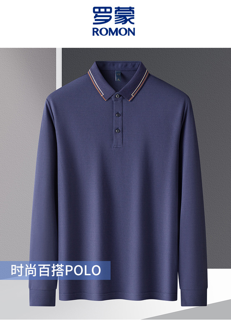 【撞色领】罗蒙春秋男士仿丝光polo衫男长袖t恤男商务男士polo衫长袖