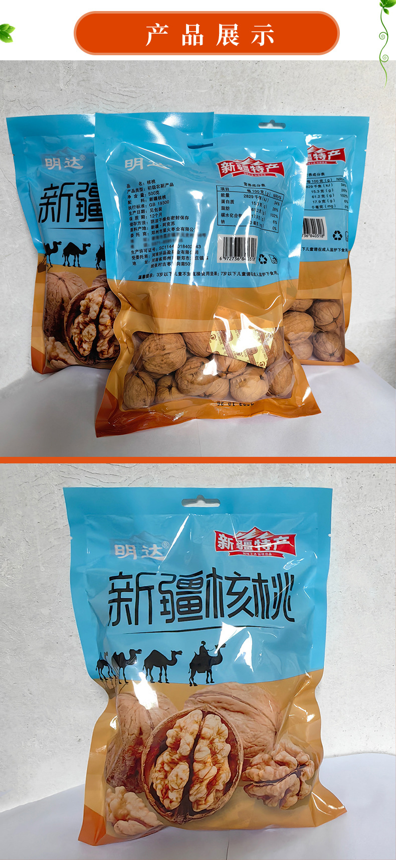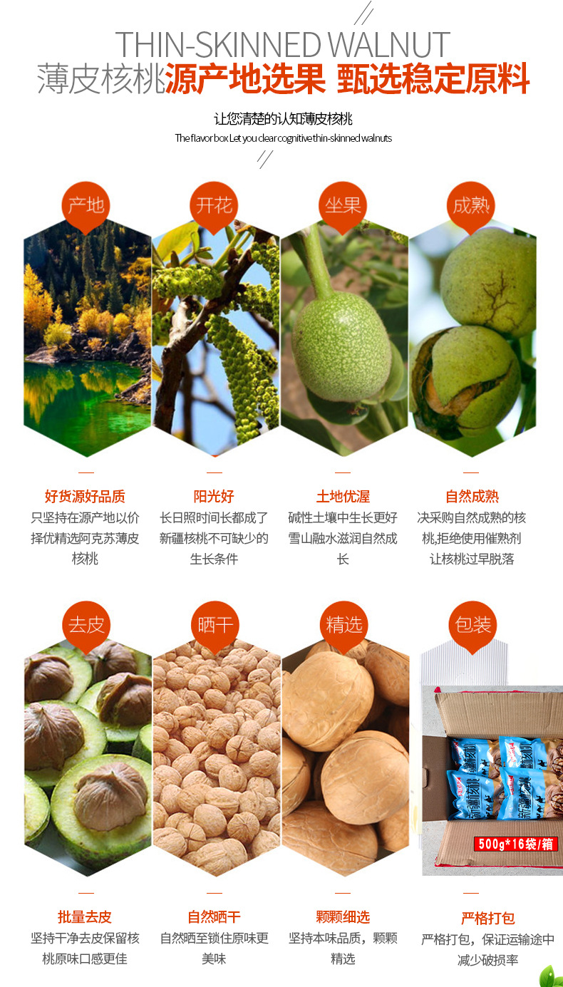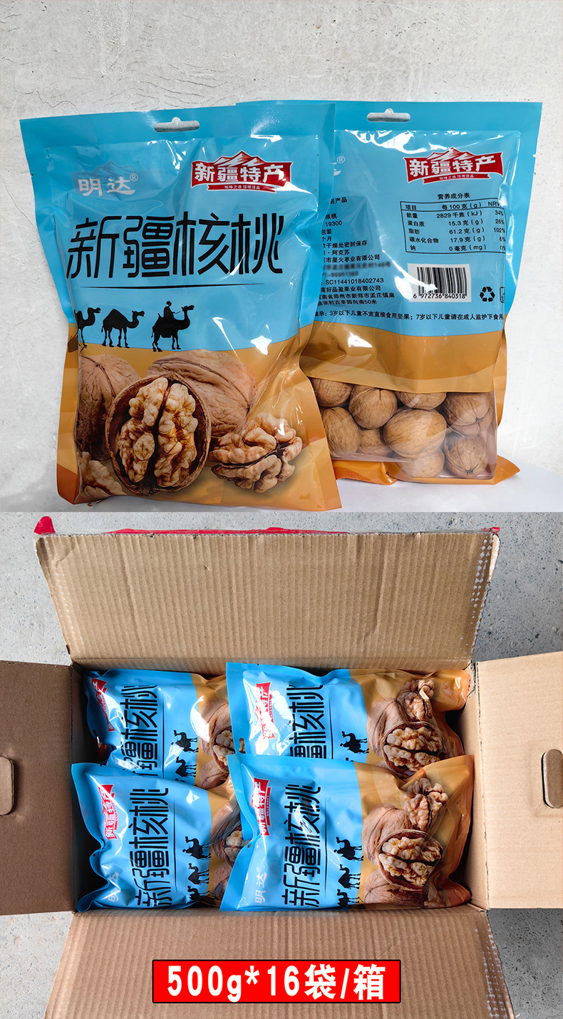 新疆阿克苏生核桃原味500g独立包装代发 185薄皮纸皮核桃工厂批发