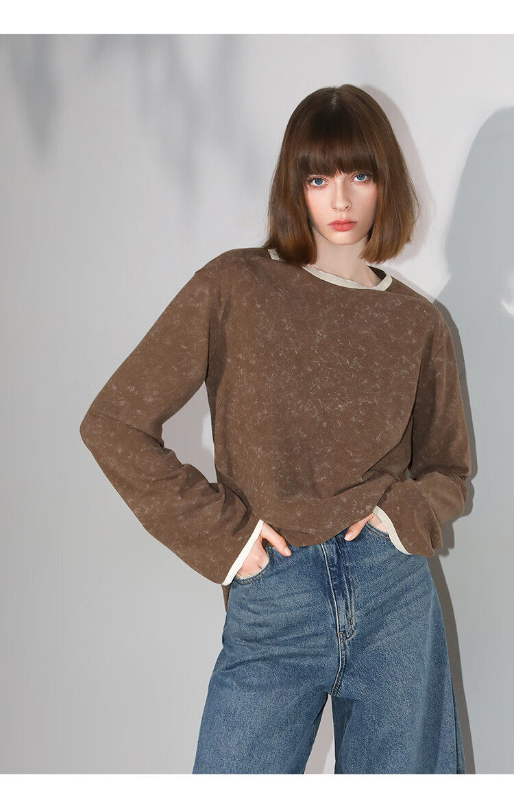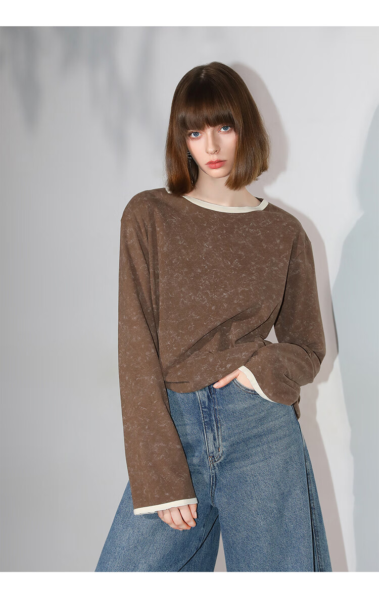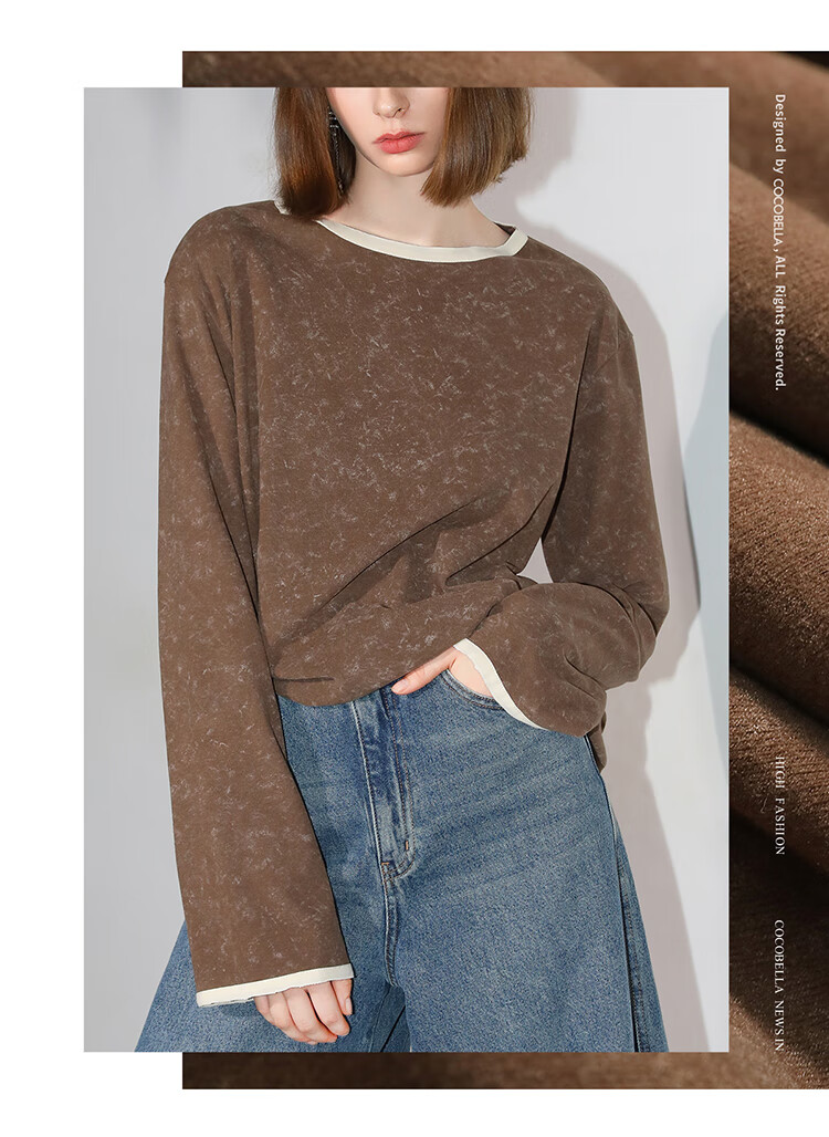 COCOBELLA[baby肤感]莱赛尔扎染长袖T恤撞色舒适针织衫TS7057