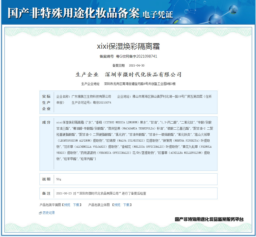 XIXI保湿焕彩防护霜