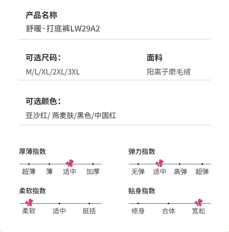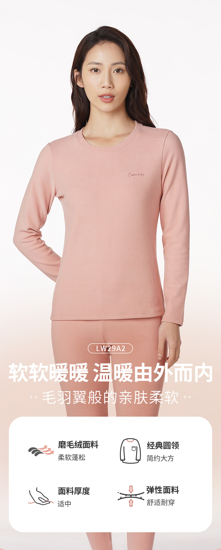 都市丽人舒暖负5度至5度女士特殊面料套装阳离子磨毛绒中套装保暖衣LW29A2