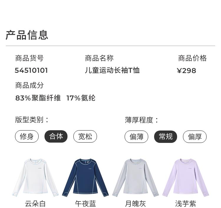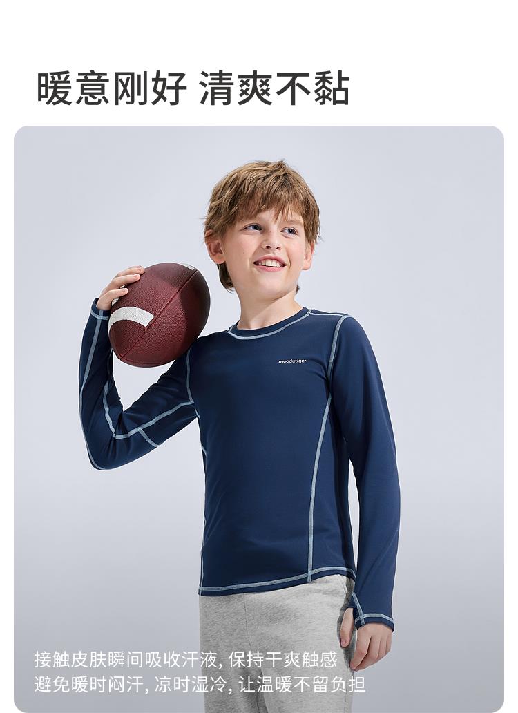 moodytiger儿童运动长袖T恤云感亲肤弹力舒适上衣54510101