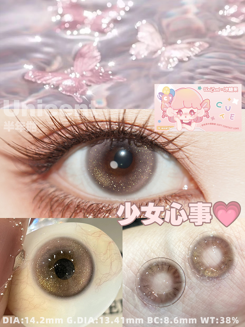ICE CANDY 少女心事 半年抛 两片 14.2mm 参考着色 13.4mm 基弧 8.6 含水 38% 新锐国货
