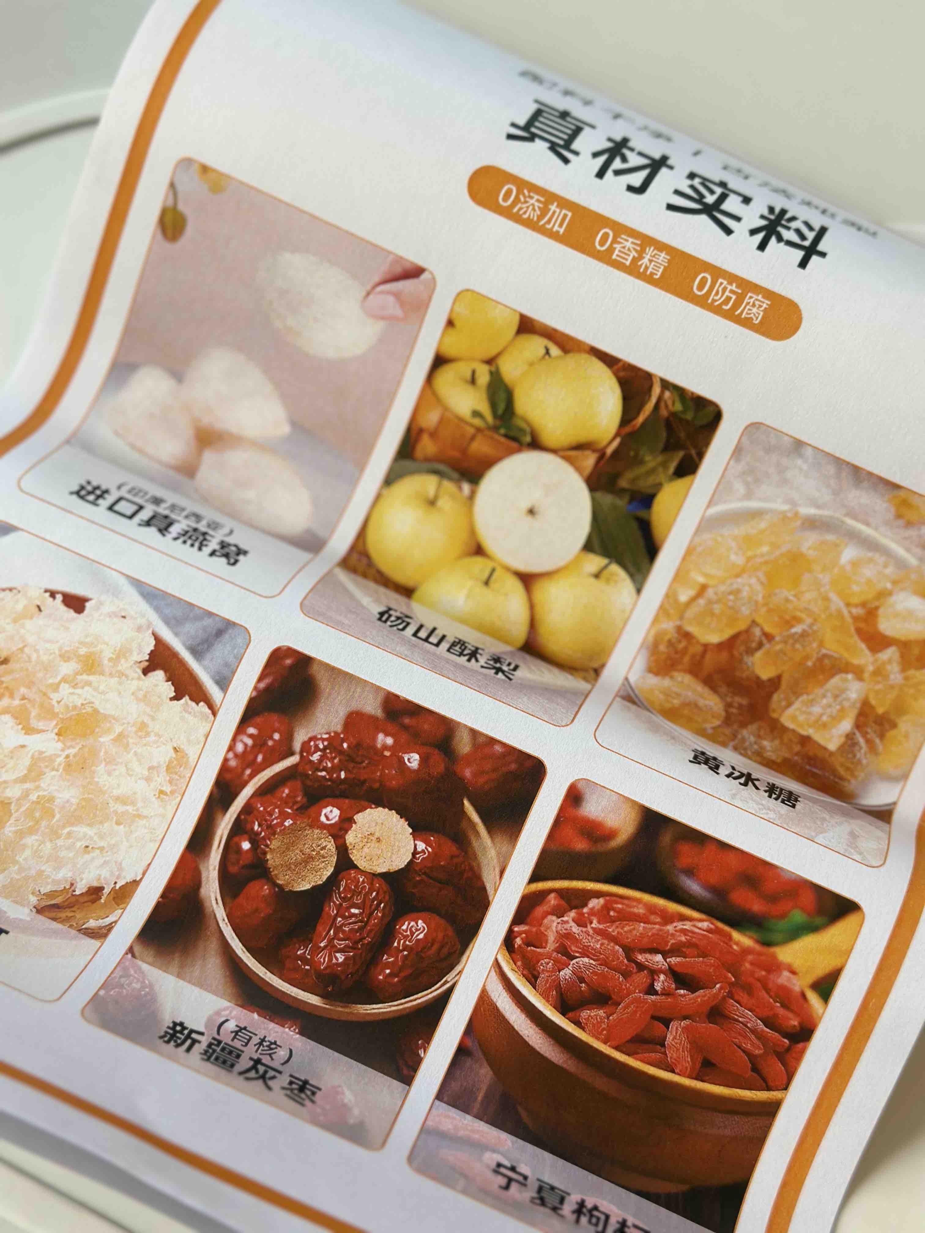 砀山酥梨,黄冰糖,新疆灰枣古田银耳,宁夏枸杞,印尼进口燕窝。来源可溯